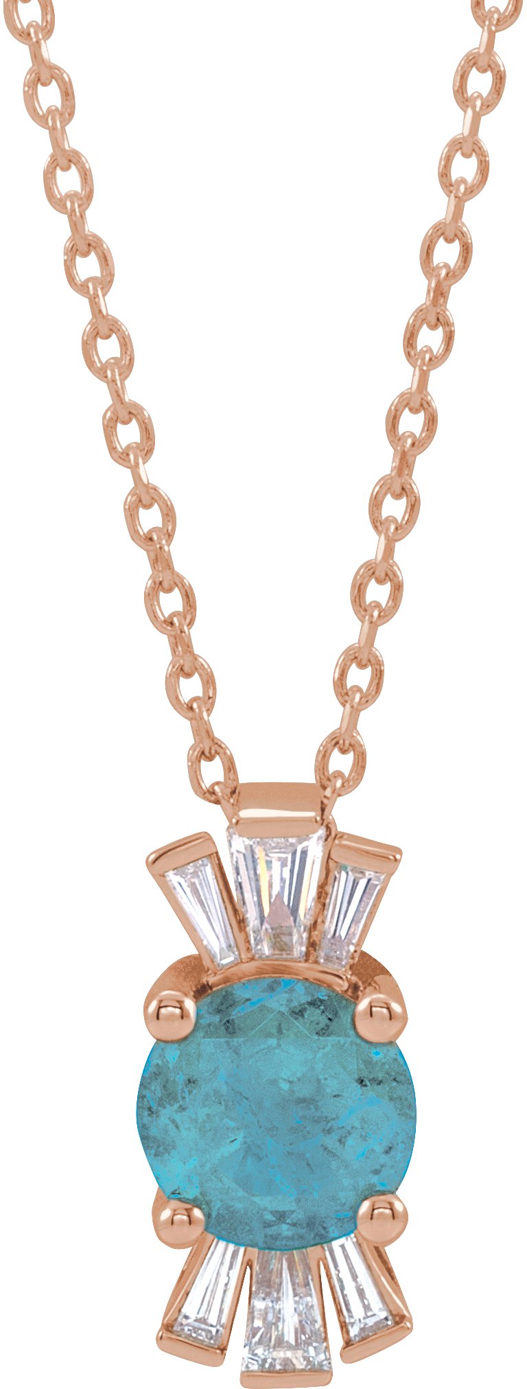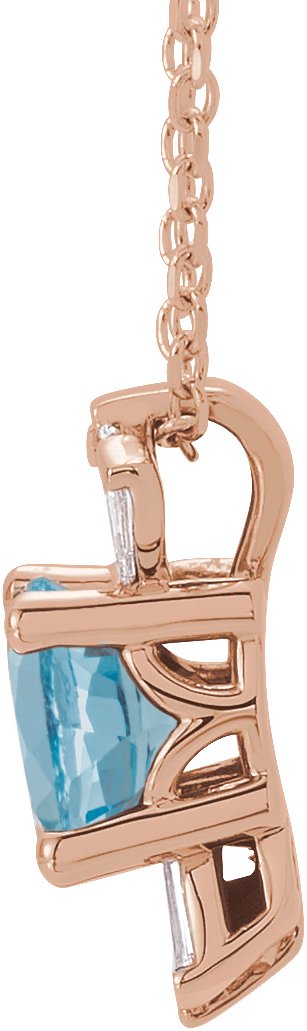 14K Rose Aquamarine & 1/6 CTW Diamond 16 18 inch Necklace
