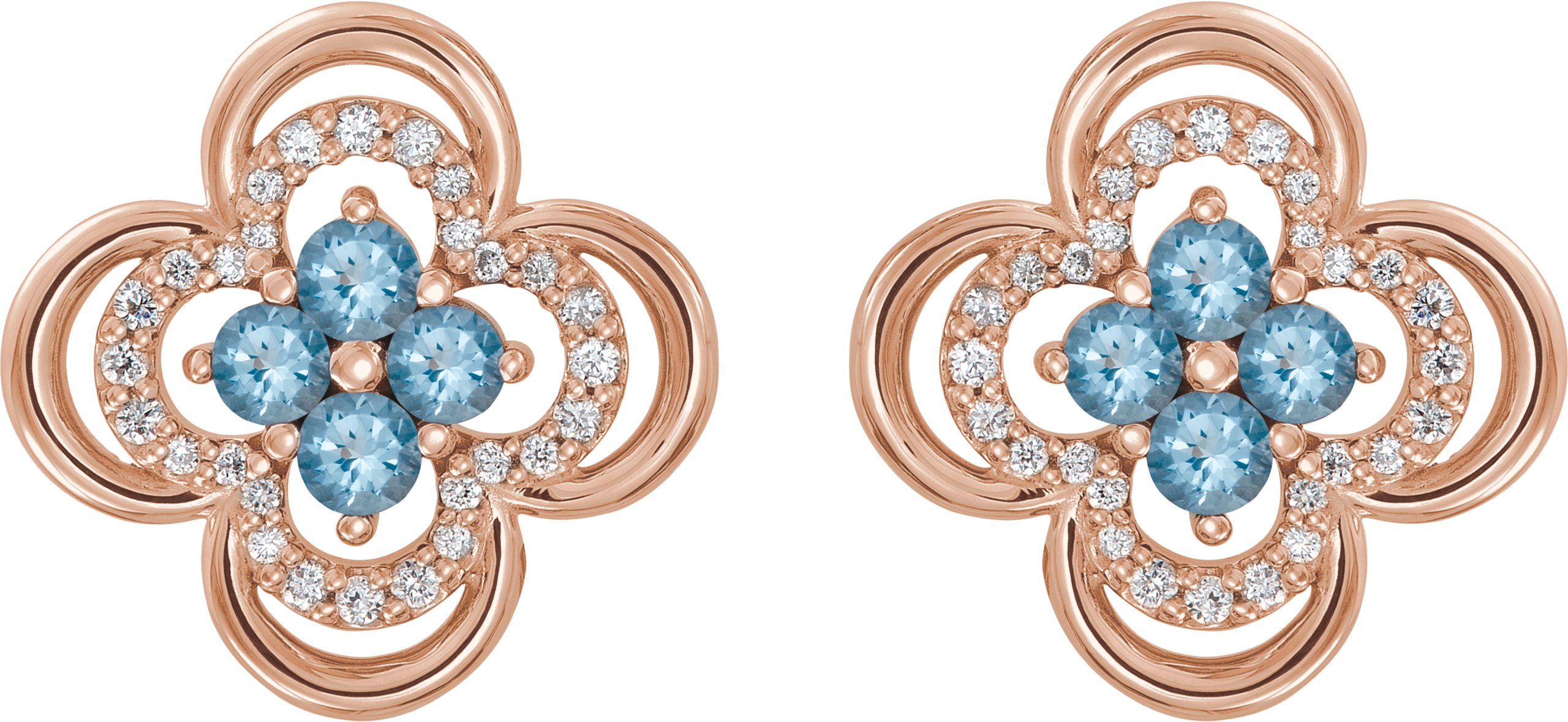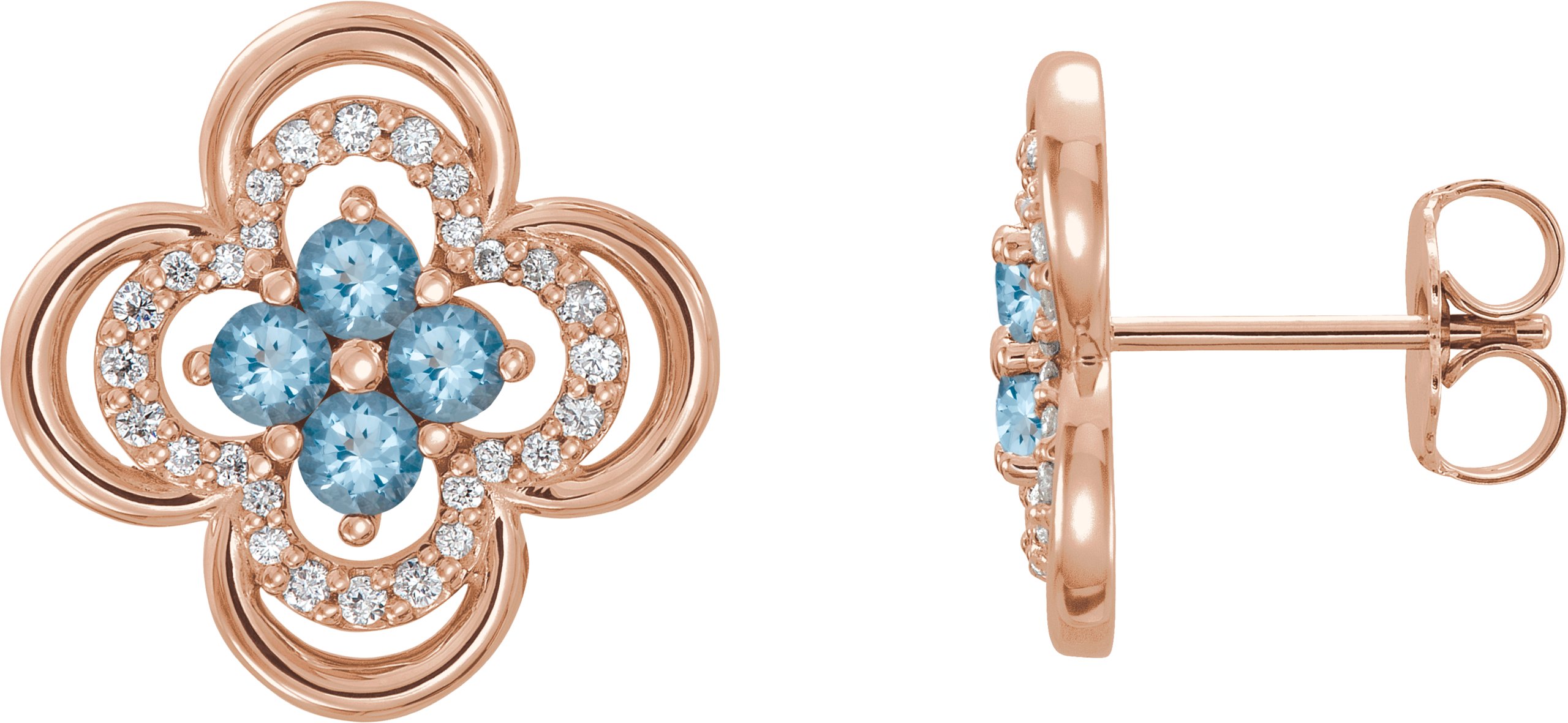 14K Rose Aquamarine & 1/5 CTW Diamond Clover Earrings