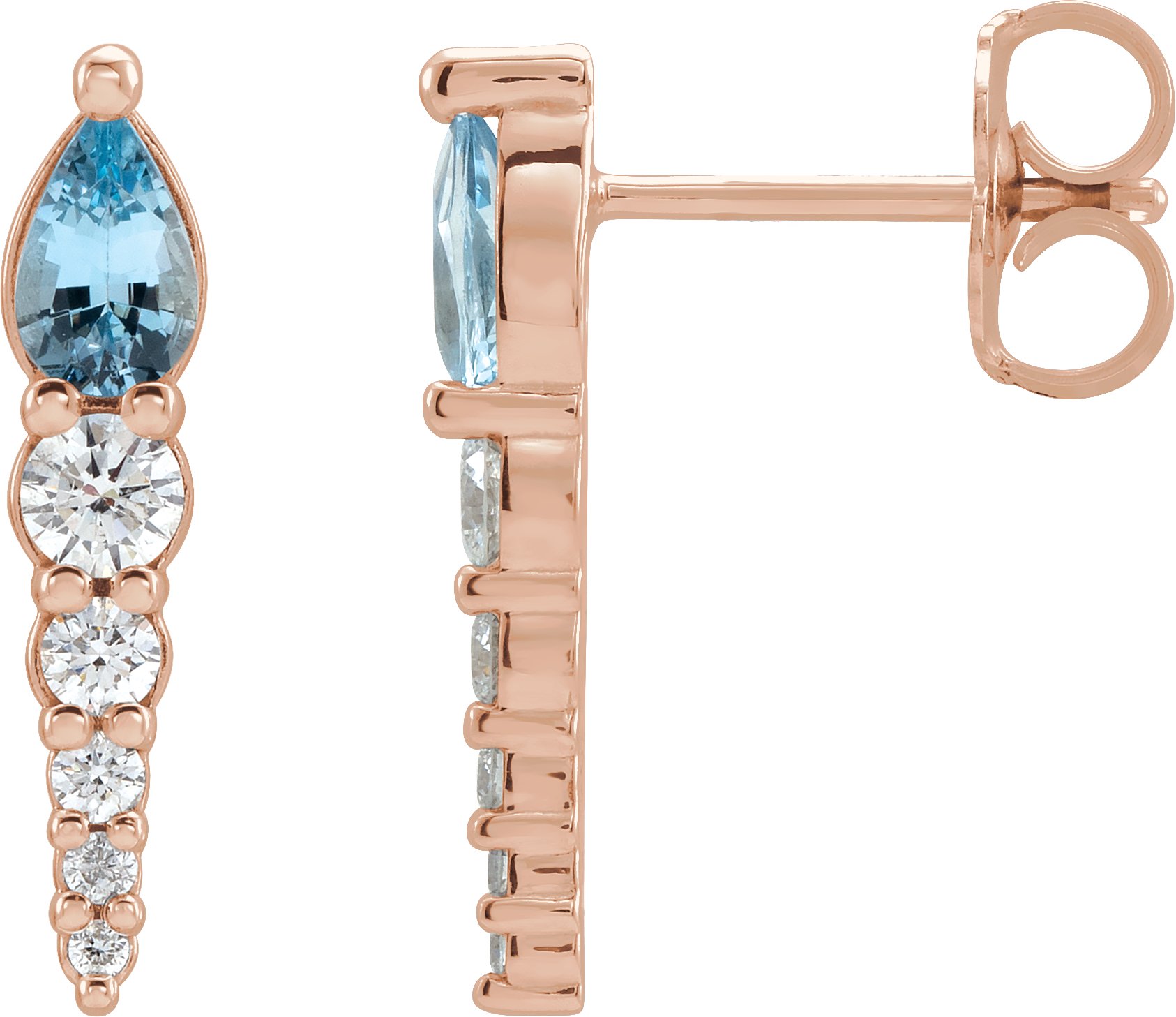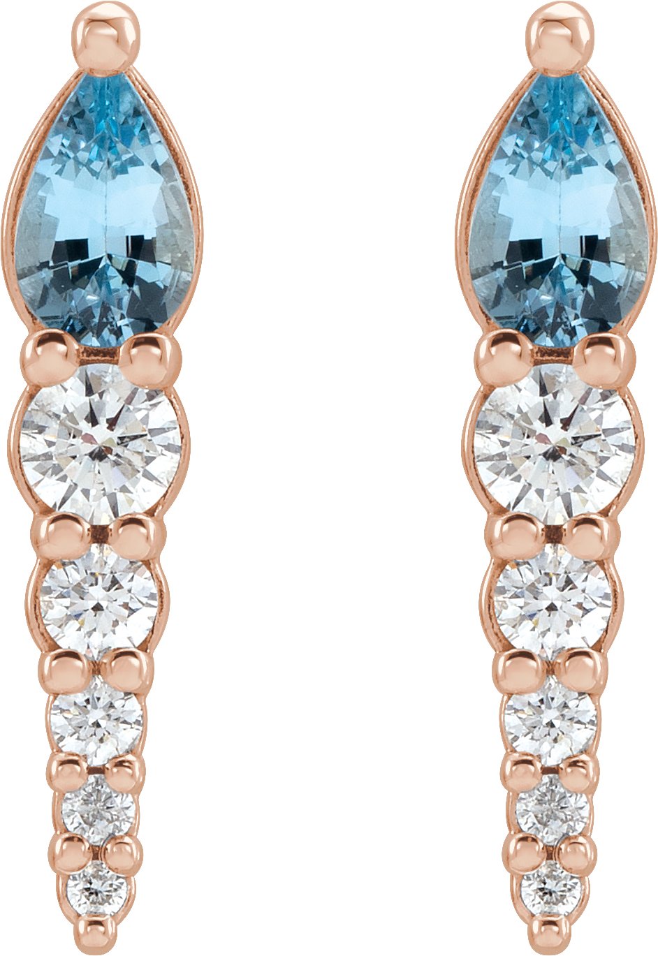 14K Rose Aquamarine & 1/4 CTW Diamond Earrings