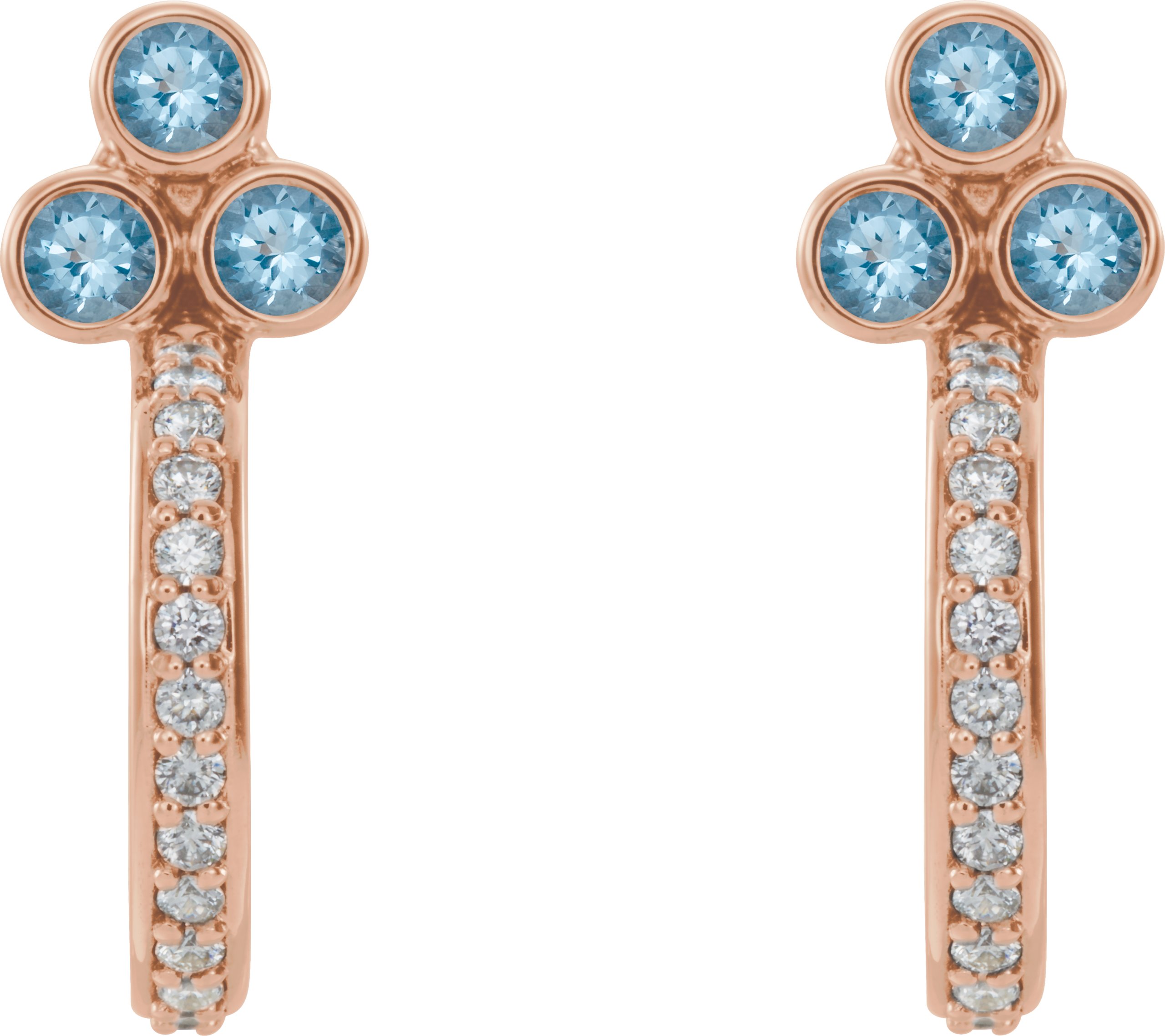 14K Rose Aquamarine & 1/4 CTW Diamond J Hoop Earrings