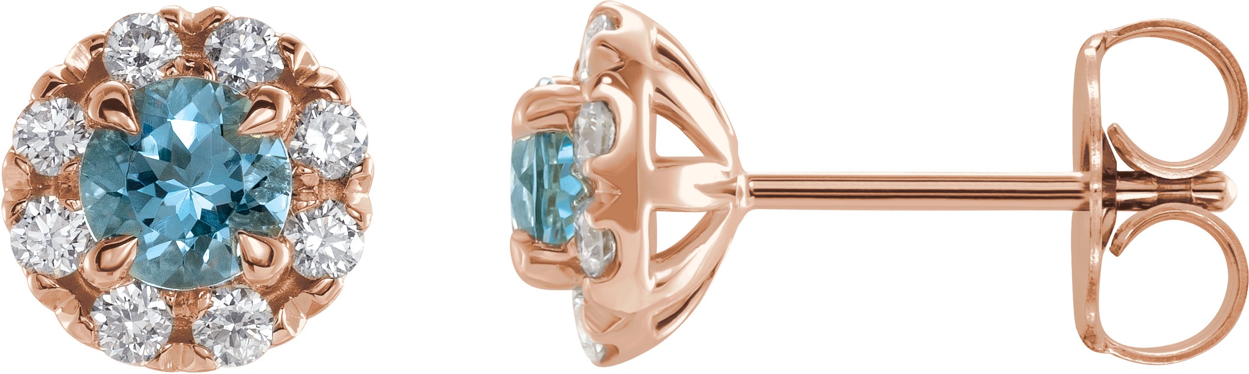 14K Rose Aquamarine and .33 CTW Diamond Earrings