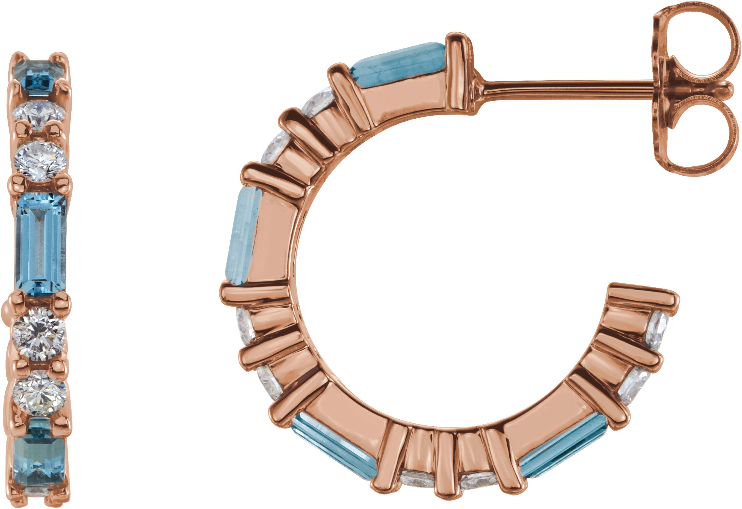 14K Rose Aquamarine & 1/2 CTW Diamond Earrings