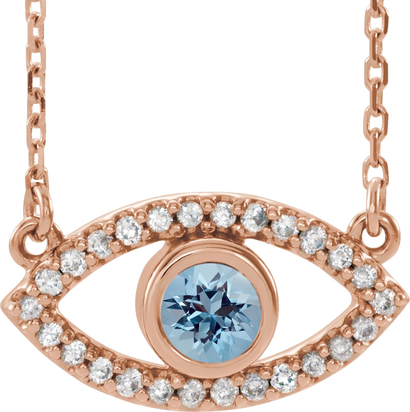 14K Rose Aquamarine & White Sapphire Evil Eye 18" Necklace Ref. 14901667