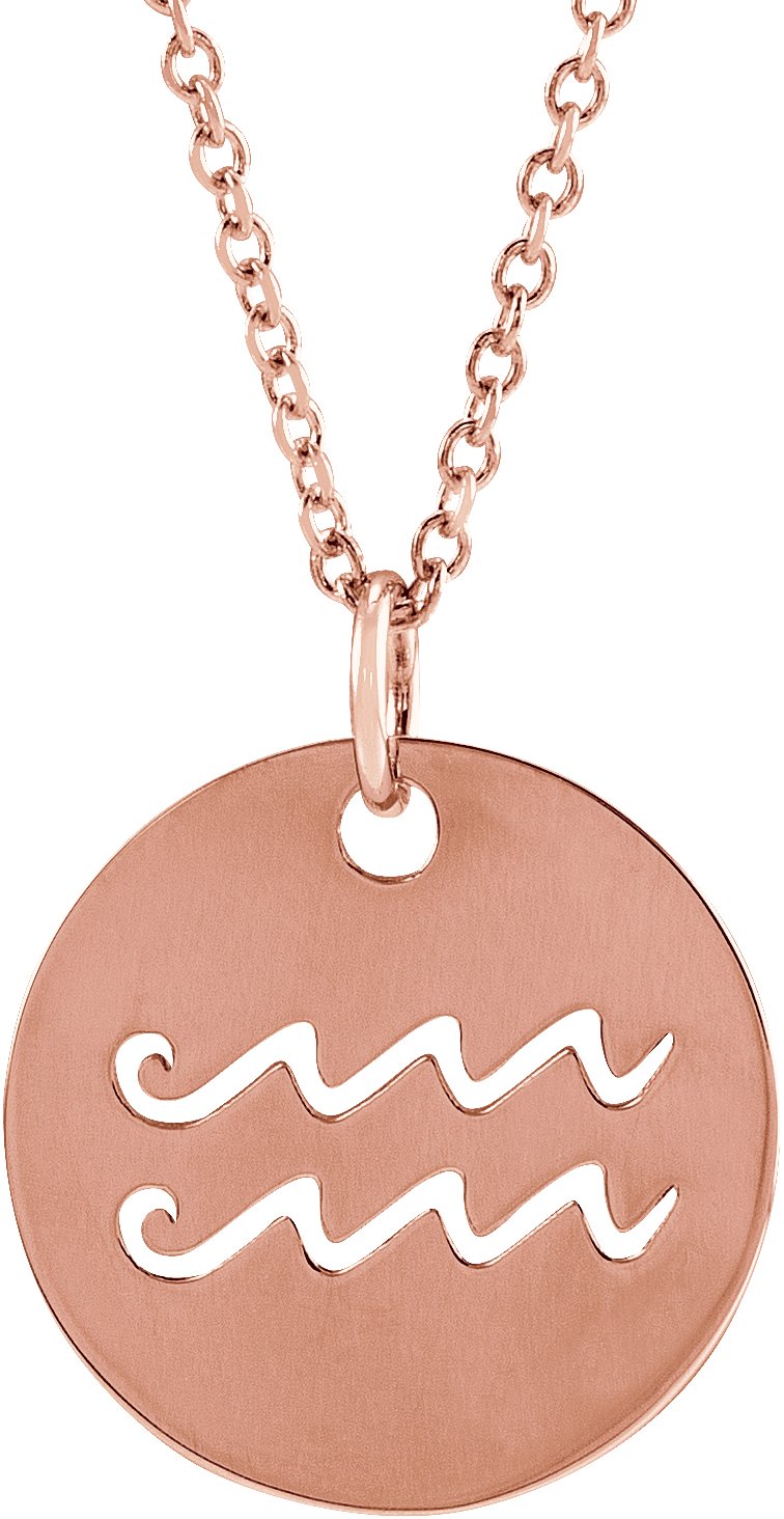 14K Rose Aquarius Zodiac Disc 16 to 18 inch Necklace Ref 17481546