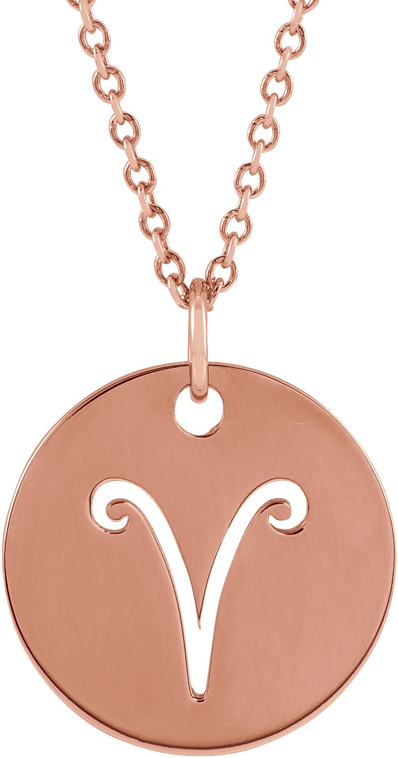 14K Rose Aries Zodiac Disc 16 to 18 inch Necklace Ref 17481496