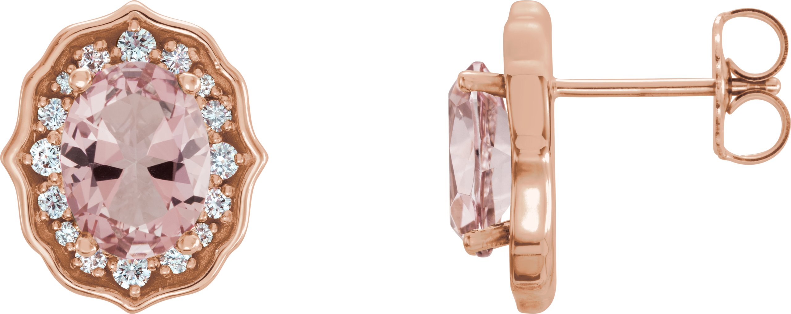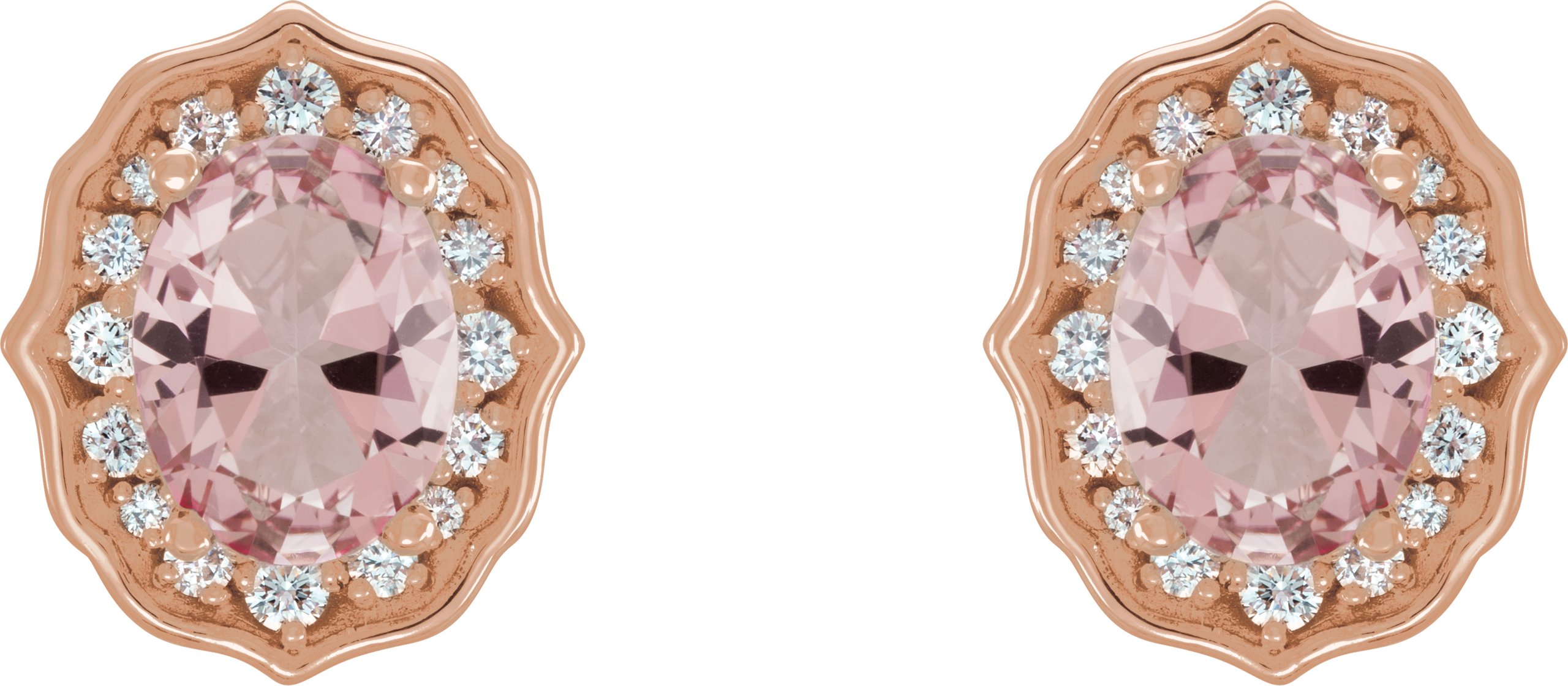 14K Rose Baby Pink Topaz and 1/3 CTW Diamond Earrings with Backs
