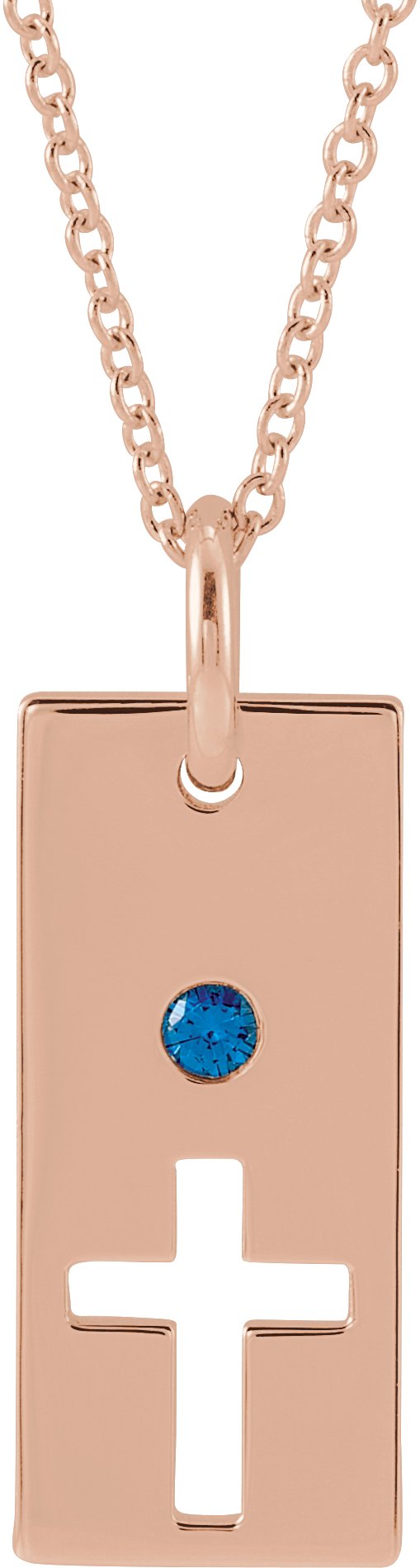 14K Rose Blue Sapphire Cross Bar 16 18" Necklace Ref. 17077747