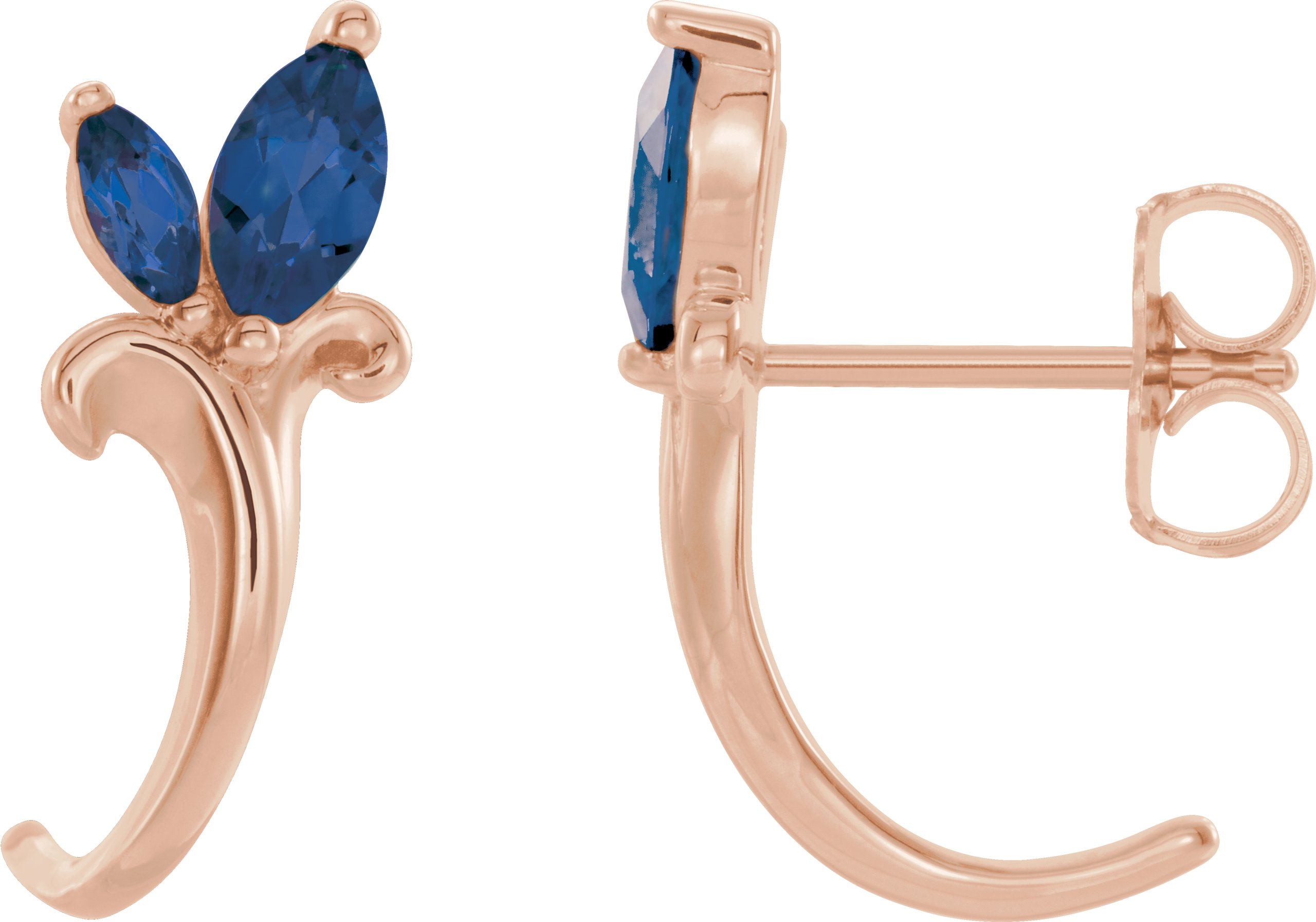 14K Rose Blue Sapphire Floral Inspired J Hoop Earrings