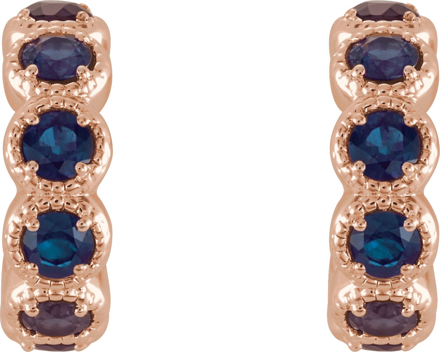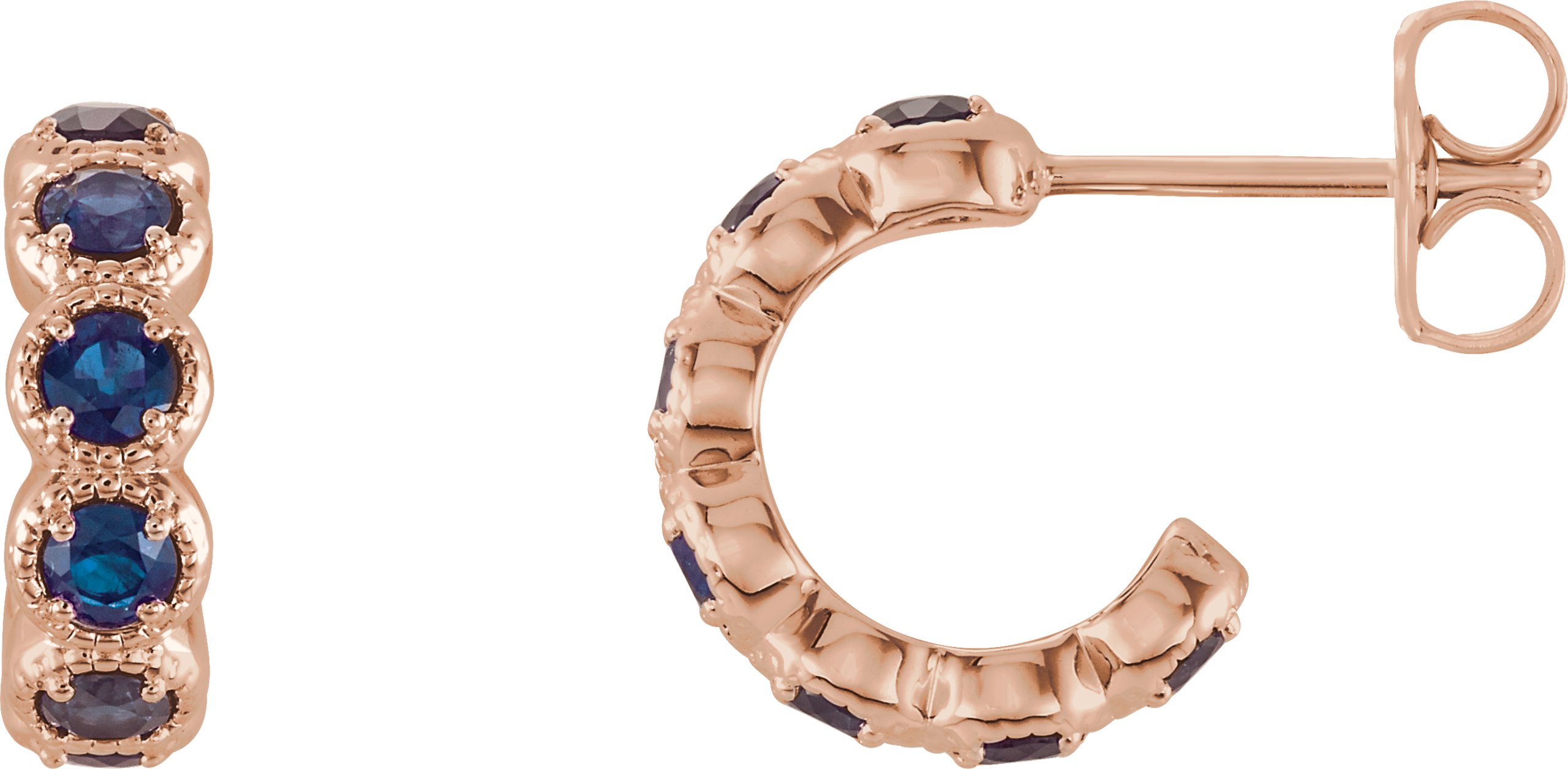 14K Rose Blue Sapphire Hoop Earrings