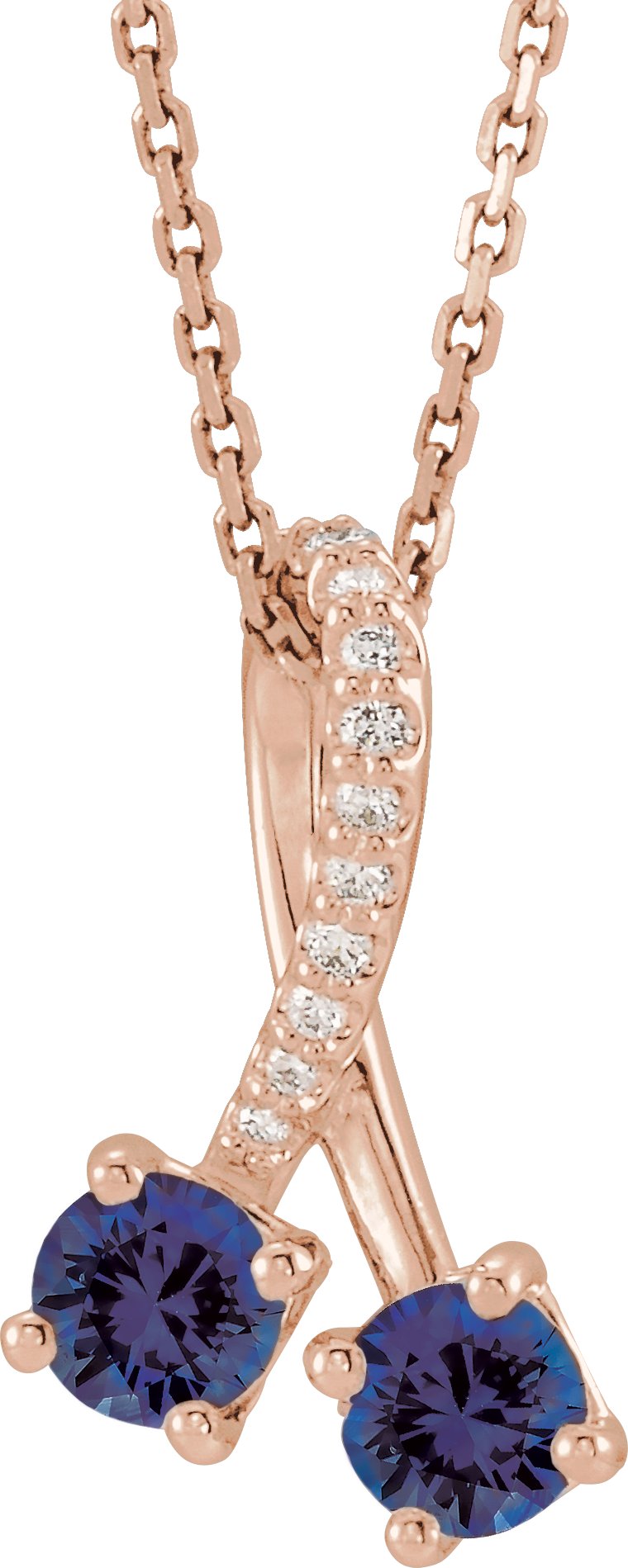 14K Rose Blue Sapphire & .05 CTW Diamond 16 18" Necklace Ref. 16760878