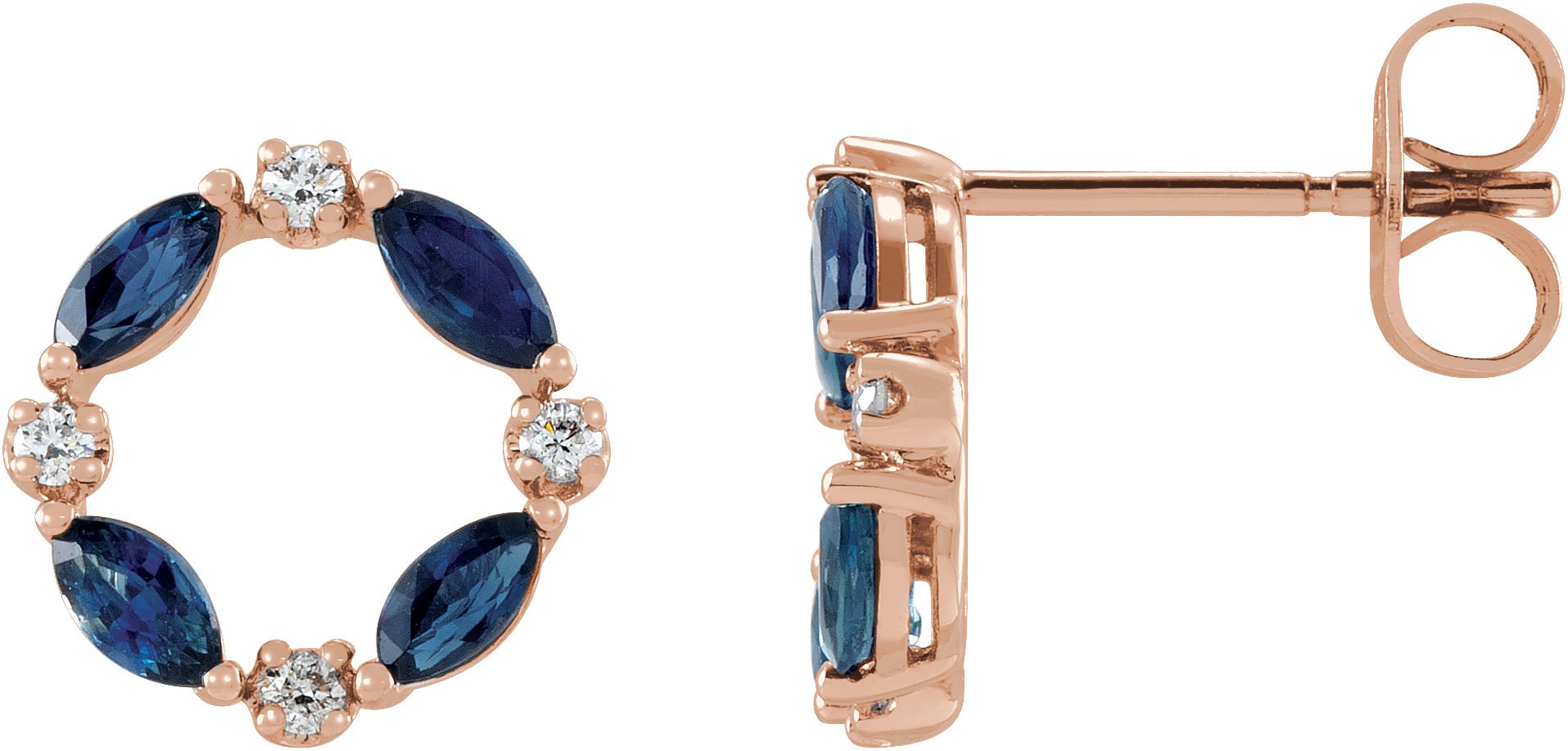 14K Rose Blue Sapphire and .1 CTW Diamond Circle Earrings