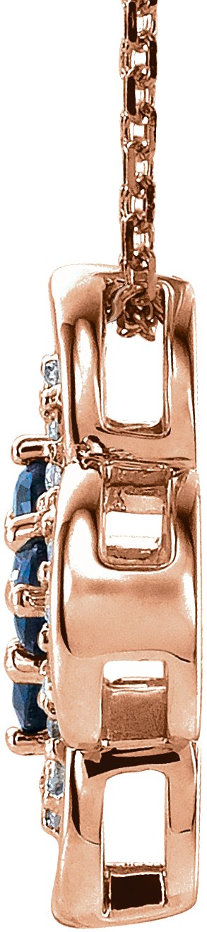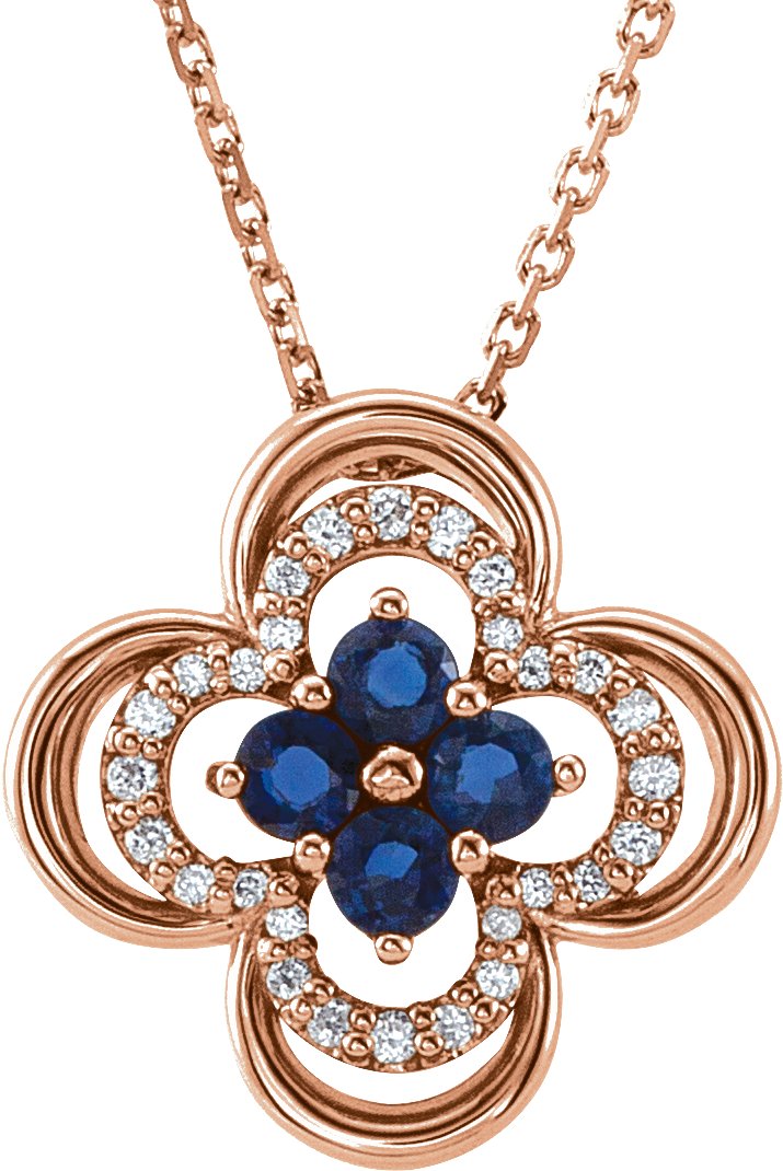 14K Rose Blue Sapphire and .10 CTW Diamond Clover 18 inch Necklace