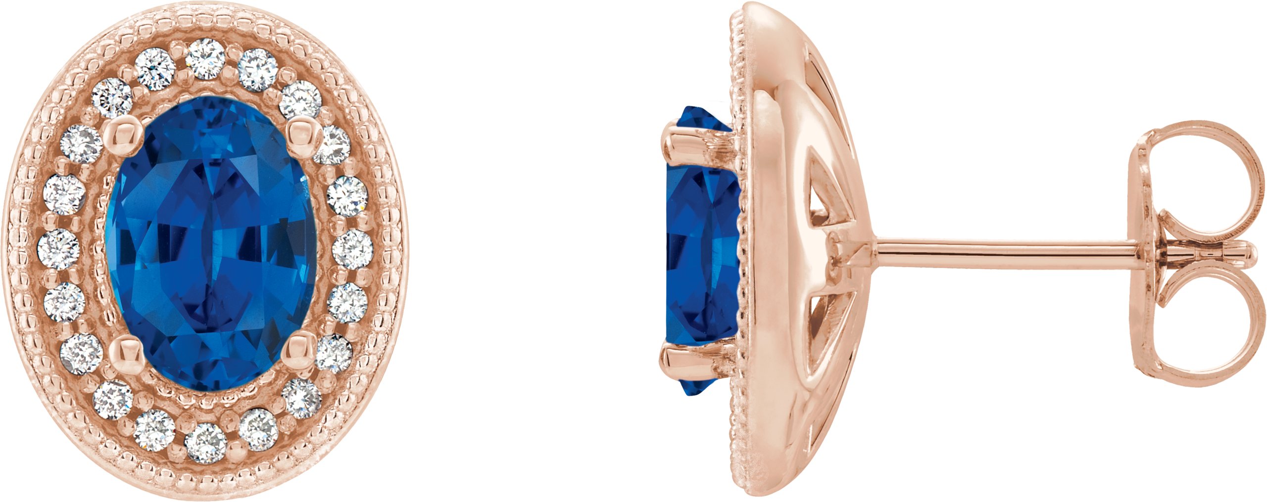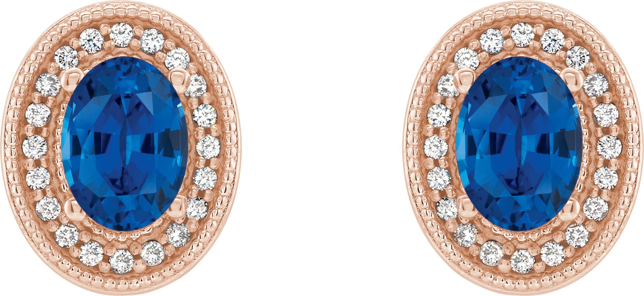 14K Rose Blue Sapphire & 1/5 CTW Diamond Halo Style Earrings