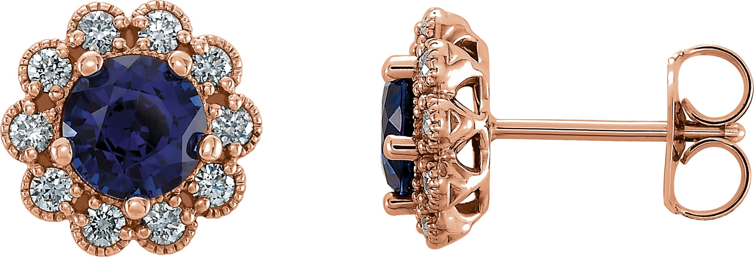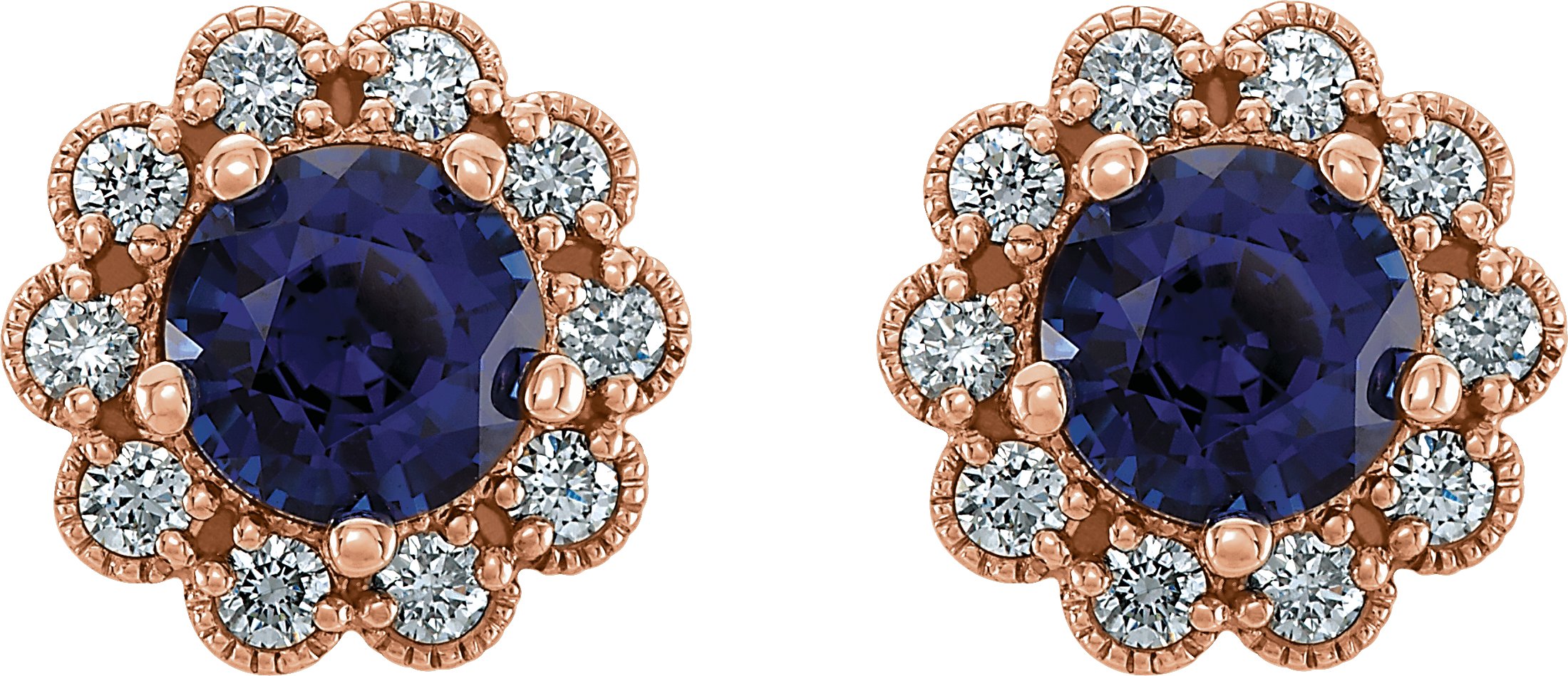 14K Rose Blue Sapphire & 1/4 CTW Diamond Earrings