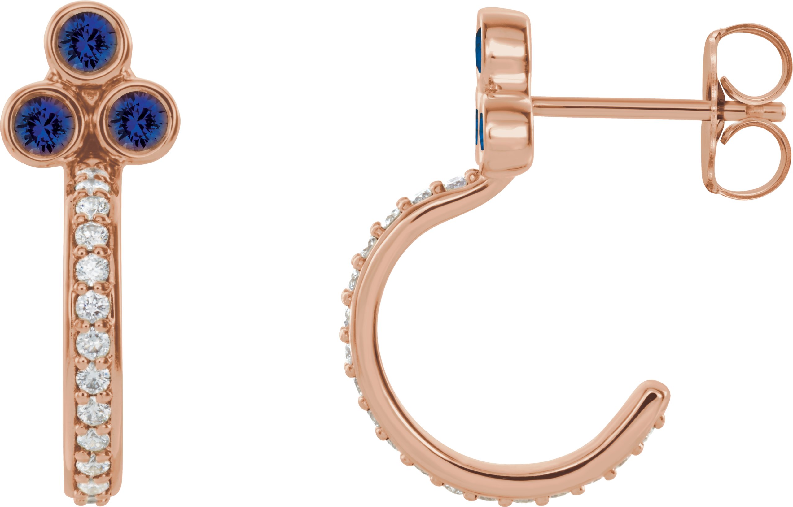 14K Rose Blue Sapphire & 1/4 CTW Diamond J Hoop Earrings