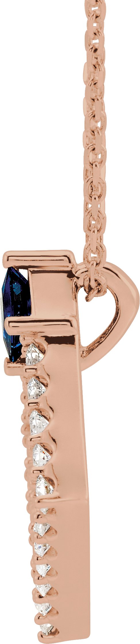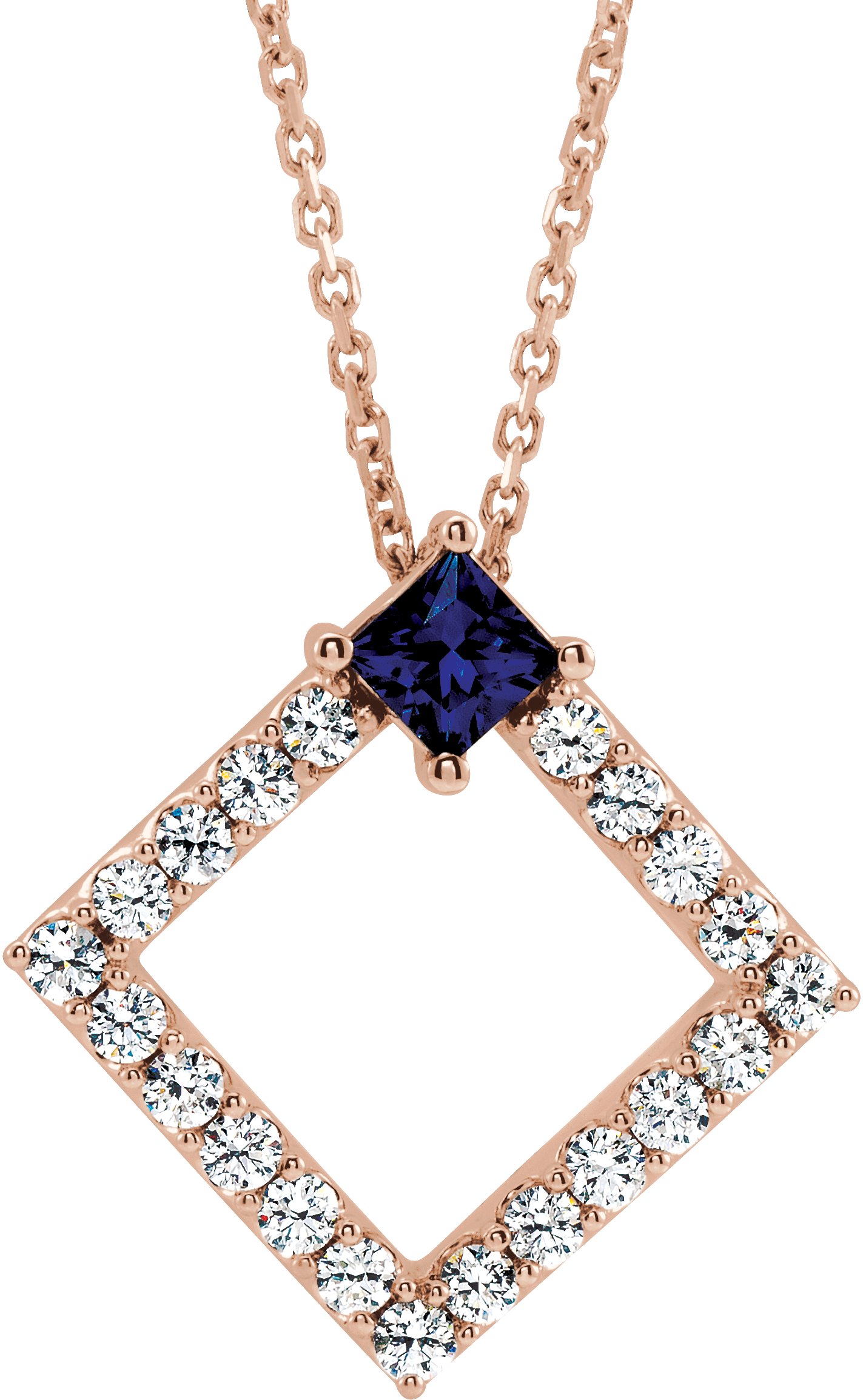 14K Rose Blue Sapphire and .375 CTW Diamond 16 18 inch Necklace