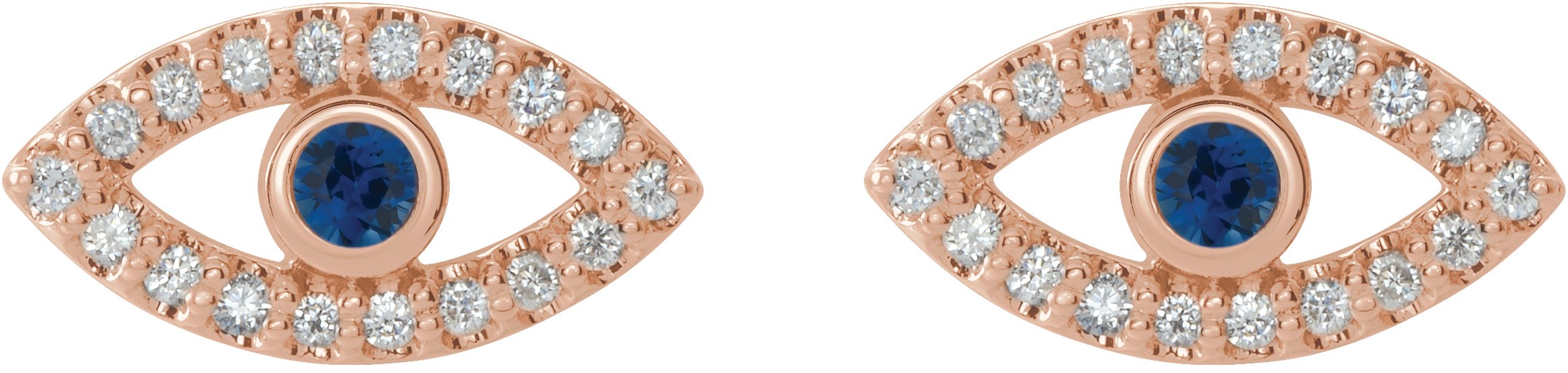 14K Rose Blue Sapphire & White Sapphire Earrings