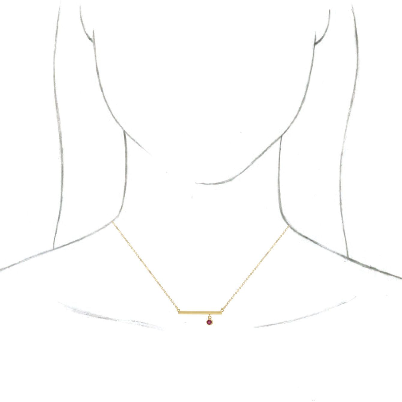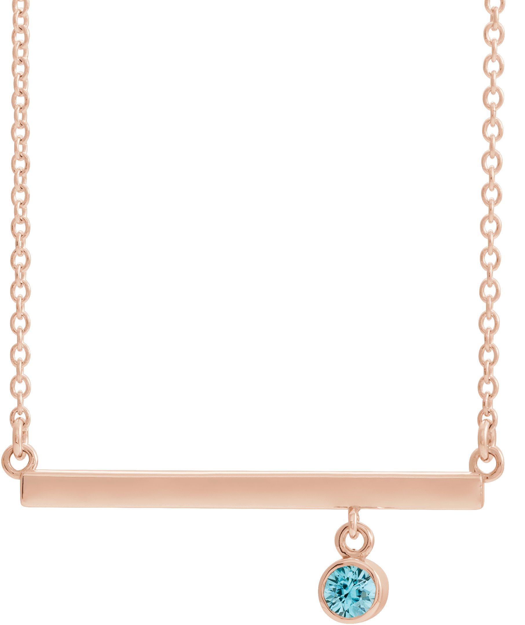 14K Rose Blue Zircon Bezel Set 18 inch Bar Necklace