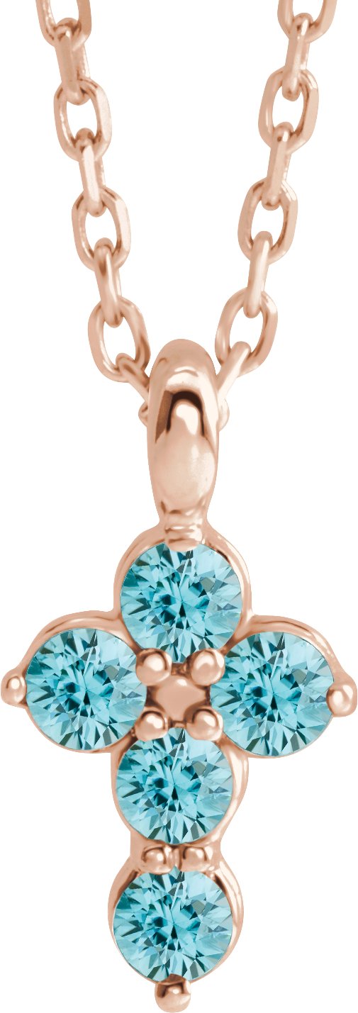 14K Rose Blue Zircon Cross 16 18" Necklace Ref. 16238404