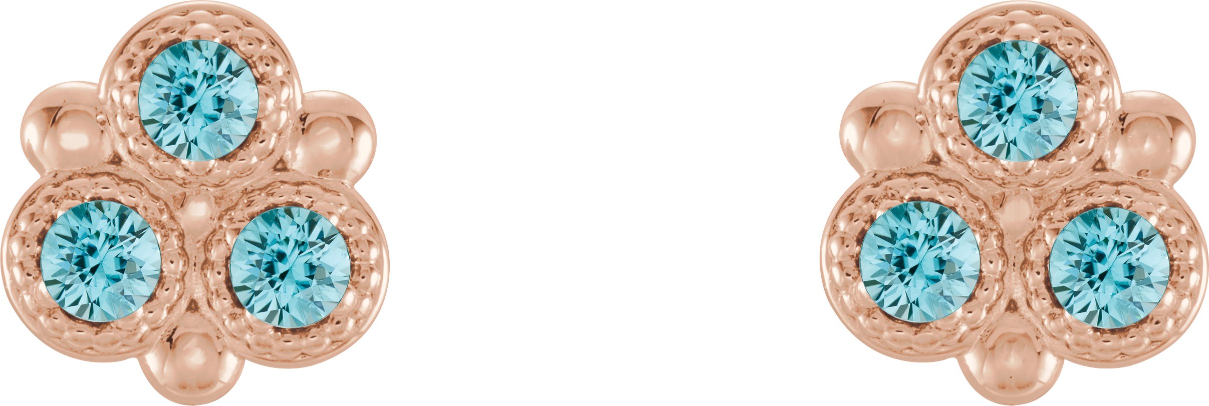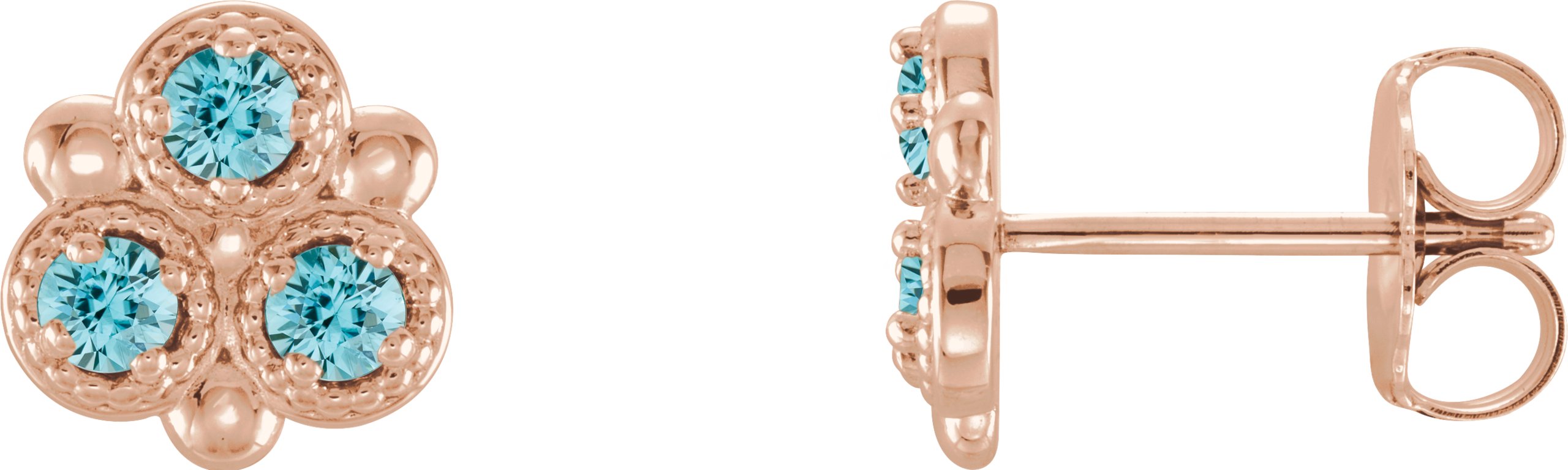14K Rose Blue Zircon Three Stone Earrings