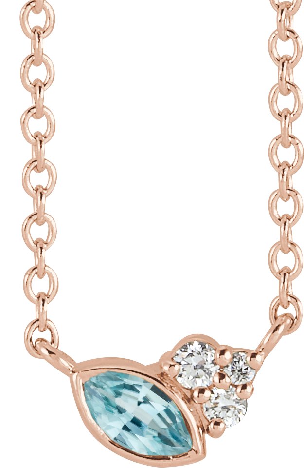 14K Rose Blue Zircon & .03 CTW Diamond 16 inch Necklace