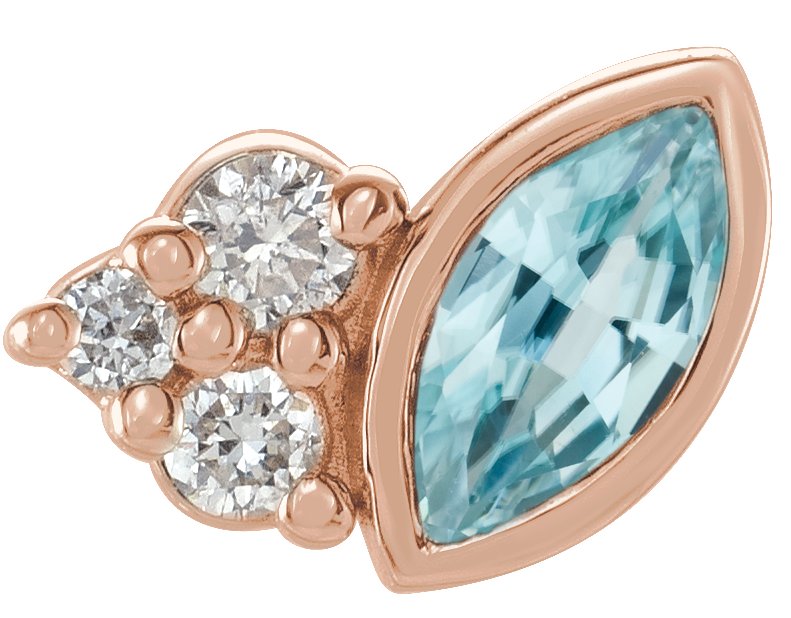14K Rose Blue Zircon and .03 CTW Diamond Right Earring