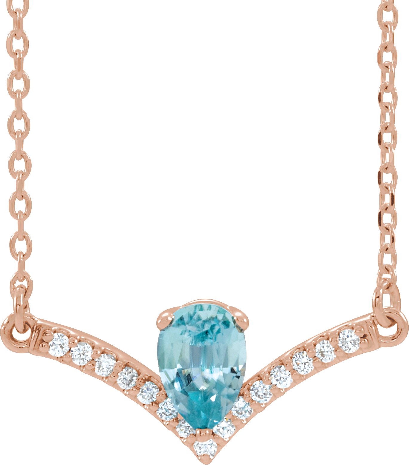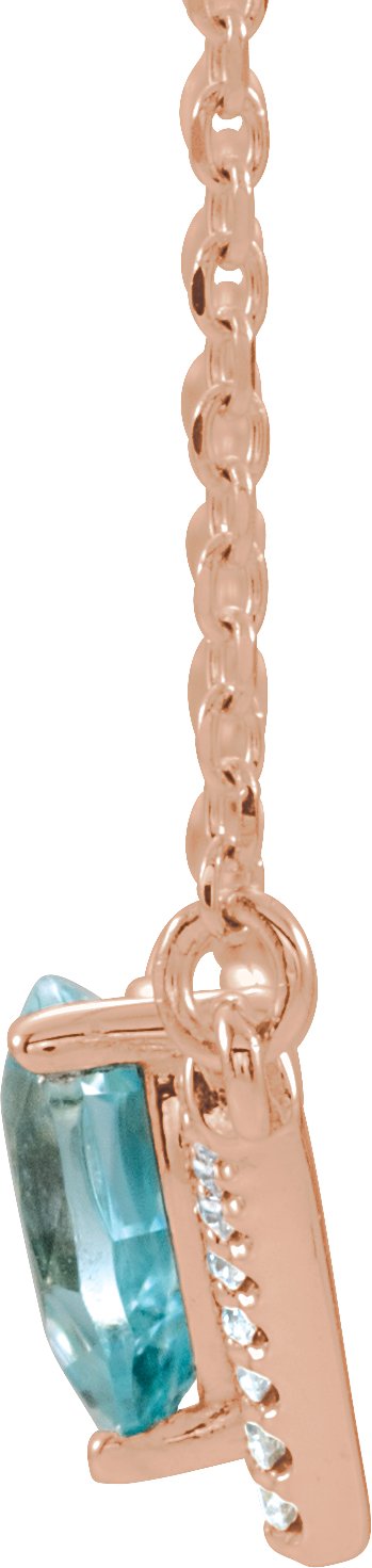 14K Rose Blue Zircon & .06 CTW Diamond 16 inch Necklace