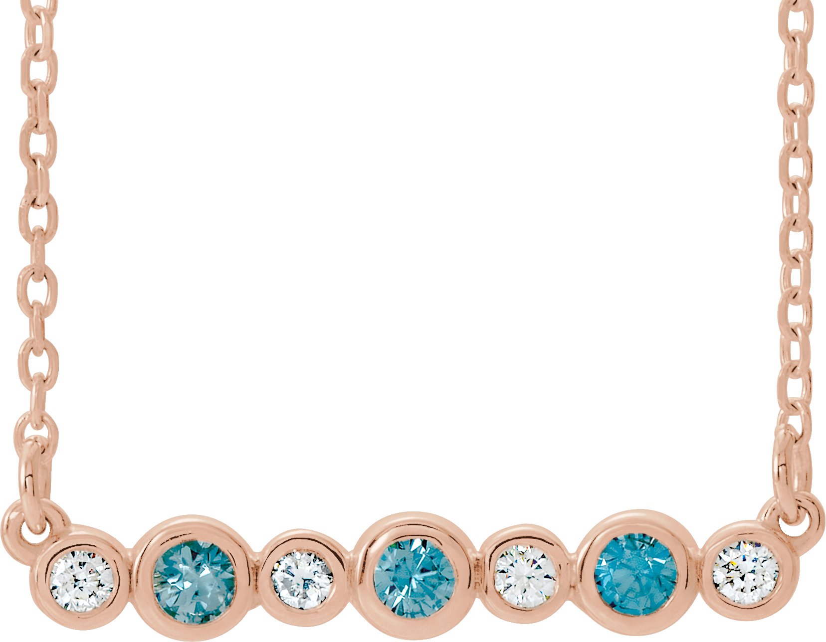 14K Rose Blue Zircon & .08 CTW Diamond Bezel Set Bar 16 18" Necklace Ref. 14204963