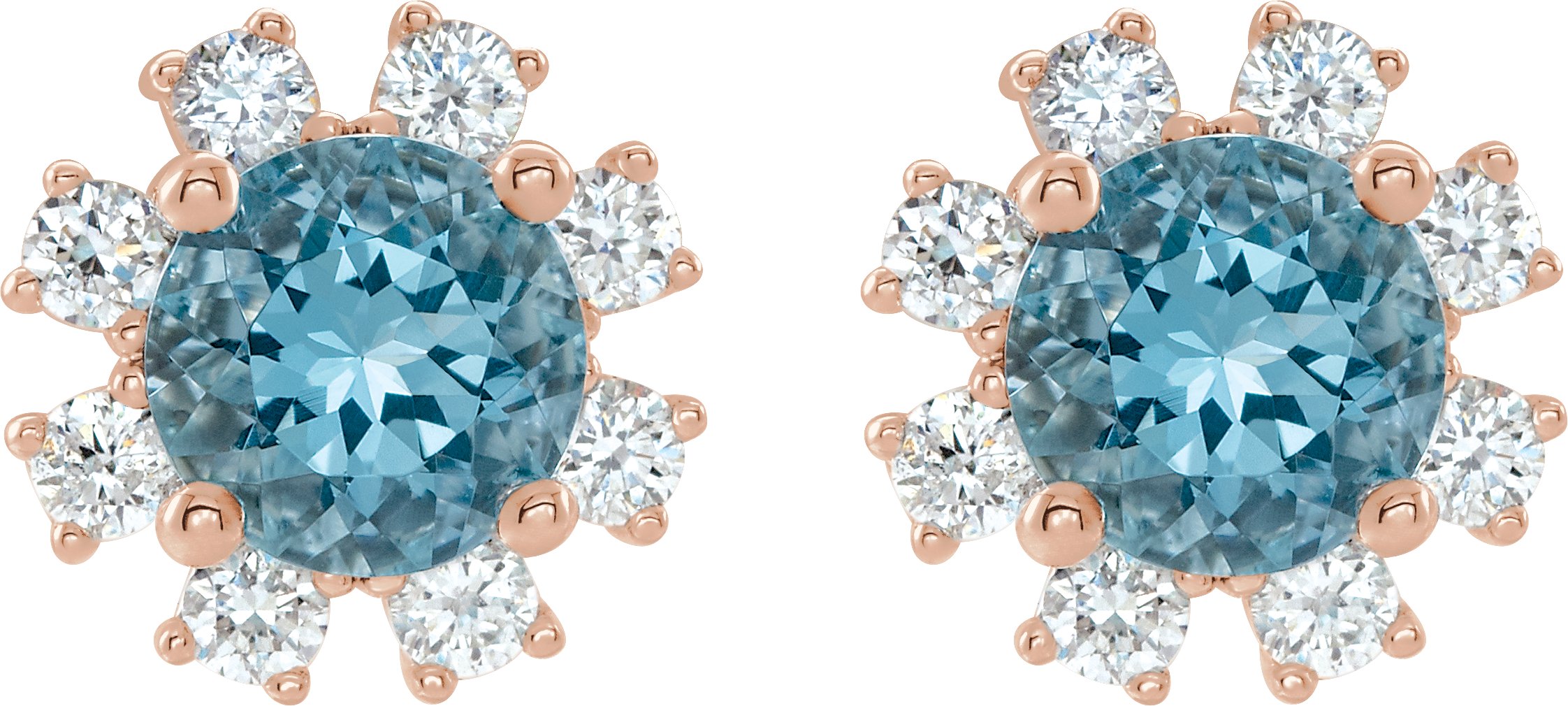 14K Rose Blue Zircon and .20 CTW Diamond Earrings