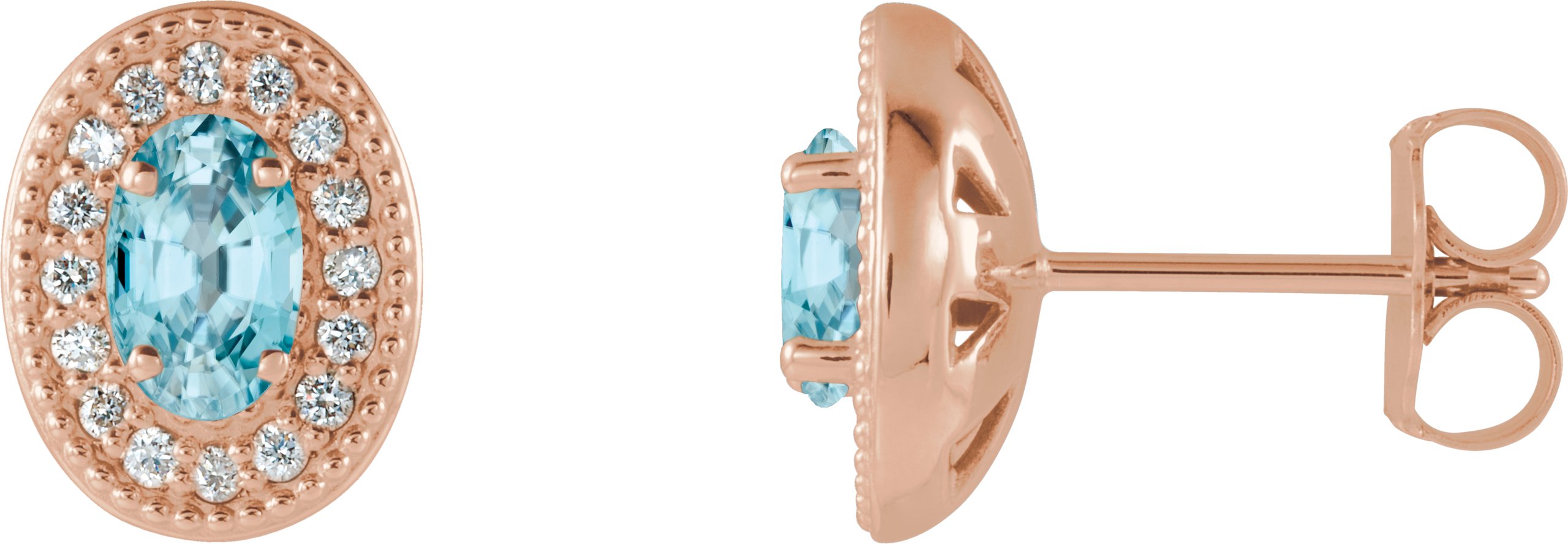 14K Rose Blue Zircon & 1/5 CTW Diamond Halo Style Earrings