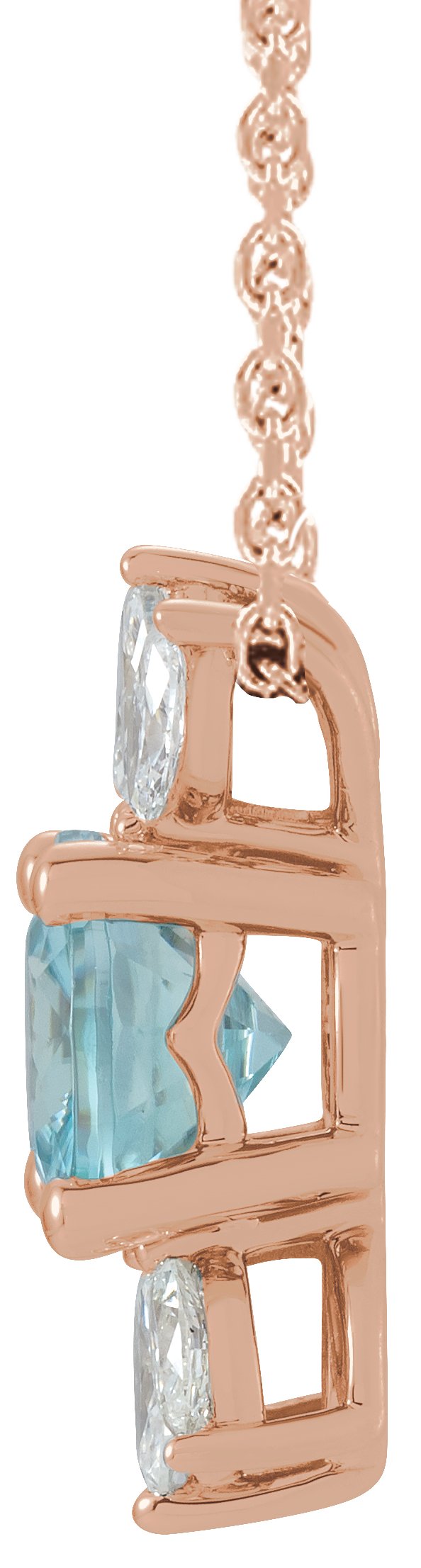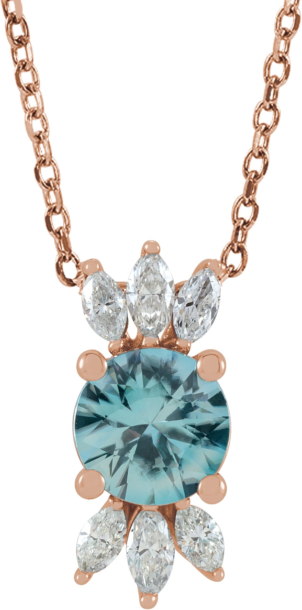 14K Rose Blue Zircon & 1/4 CTW Diamond 16 18 inch Necklace
