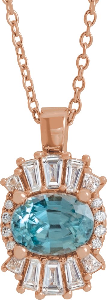 14K Rose Blue Zircon & 1/3 CTW Diamond 16 18" Necklace Ref. 15758373
