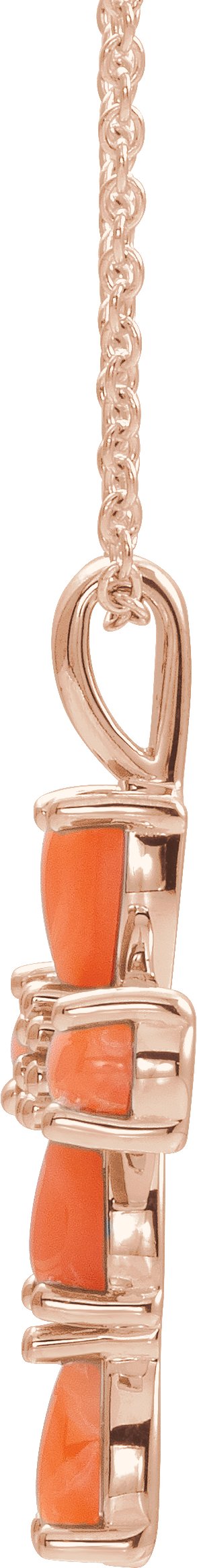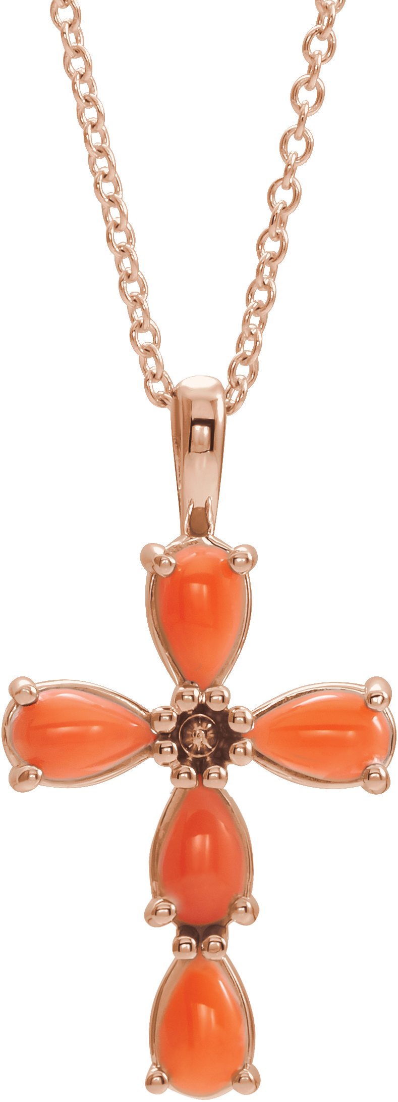 14K Rose Cabochon Pink Coral Cross 16 18" Necklace Ref. 15318337