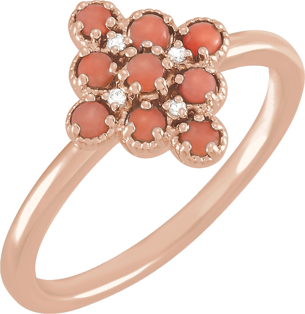 14K Rose Cabochon Pink Coral & .02 CTW Diamond Ring