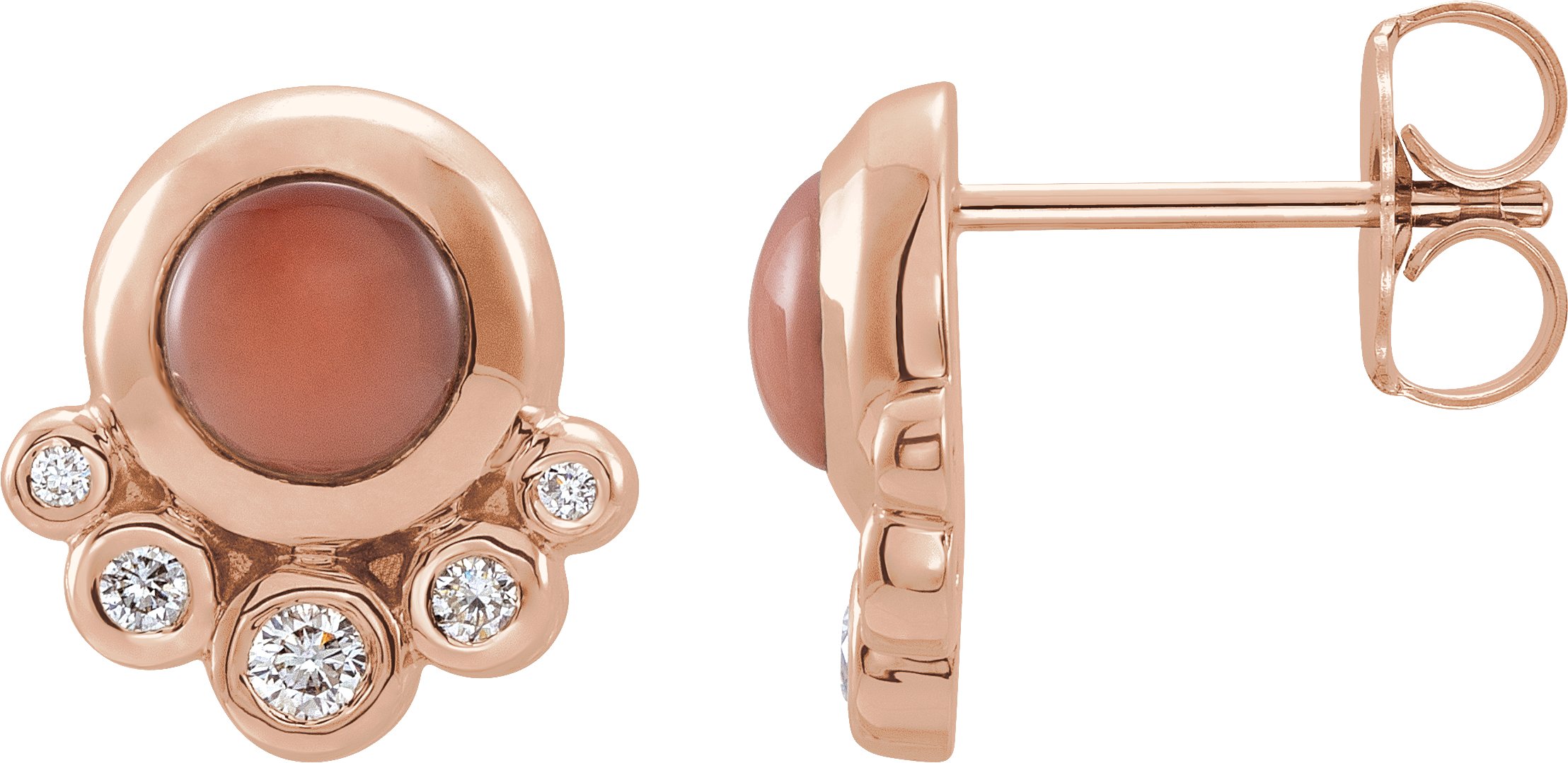 14K Rose Cabochon Pink Coral & 1/8 CTW Diamond Earrings