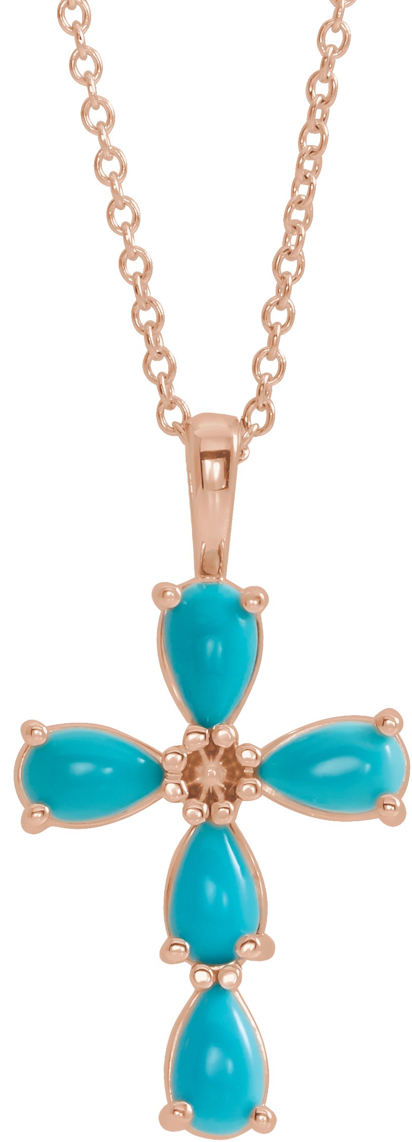 14K Rose Cabochon Turquoise Cross 16 18" Necklace Ref. 15318320