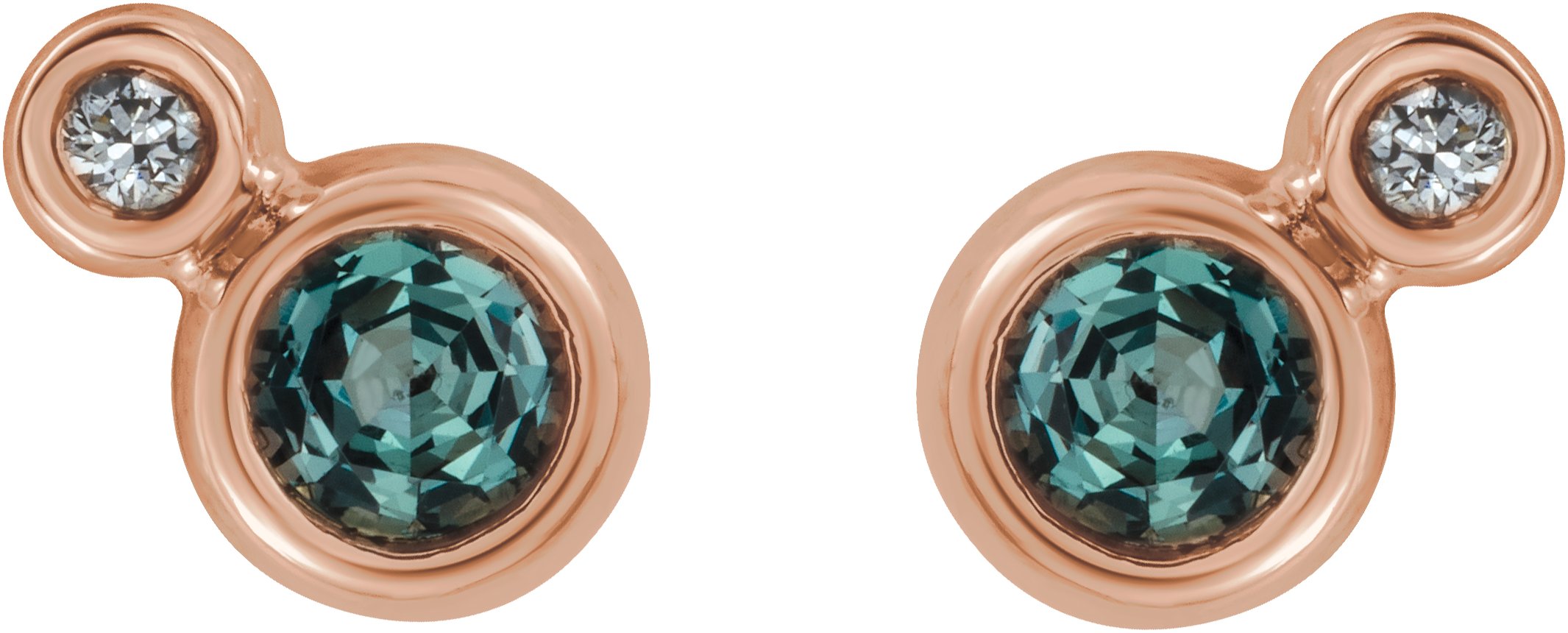 14K Rose Chatham Created Alexandrite & .03 CTW Diamond Earrings