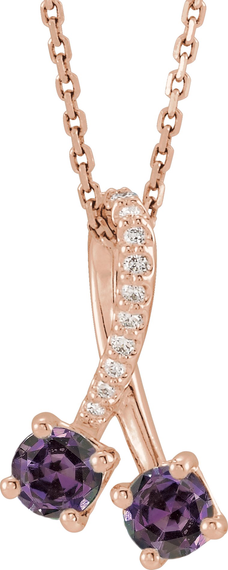 Description: Chatham Created Alexandrite And .05 Ctw Diamond Necklace
