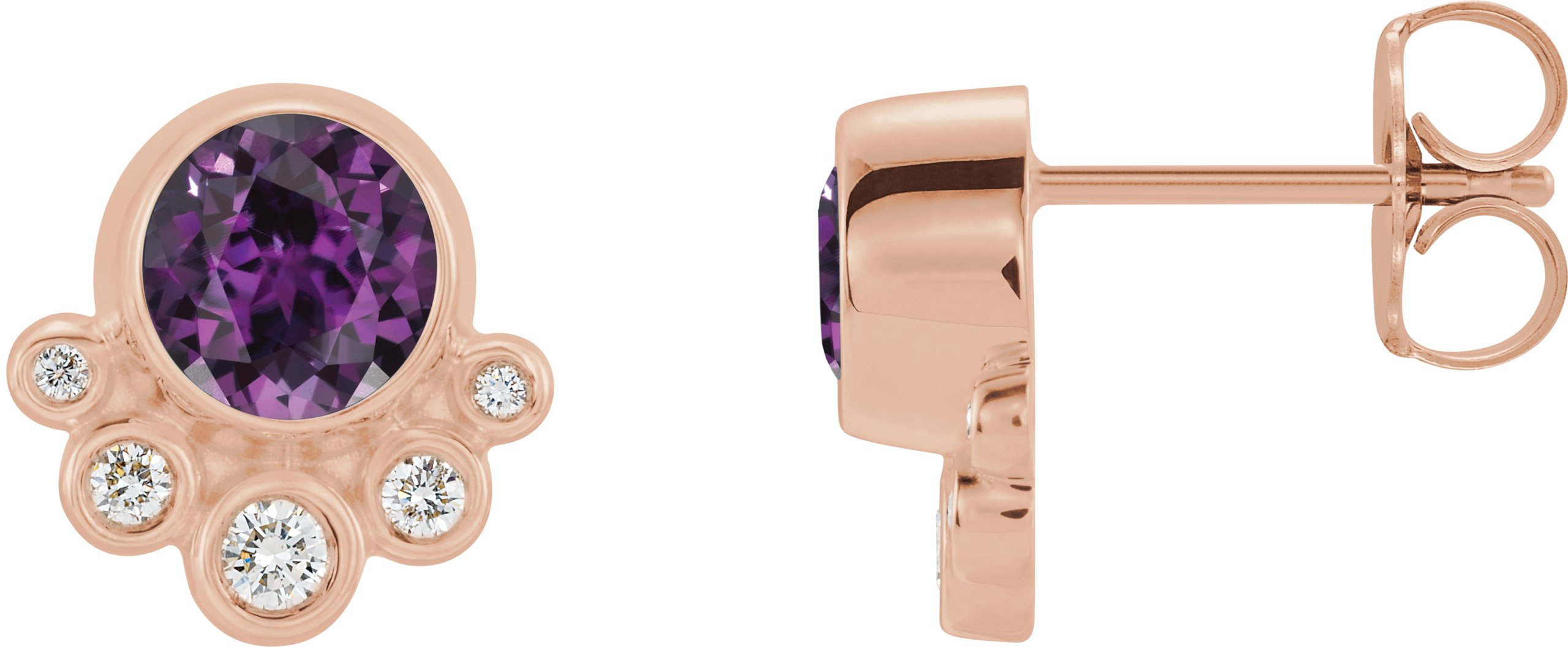 14K Rose Chatham Created Alexandrite & 1/8 CTW Diamond Earrings