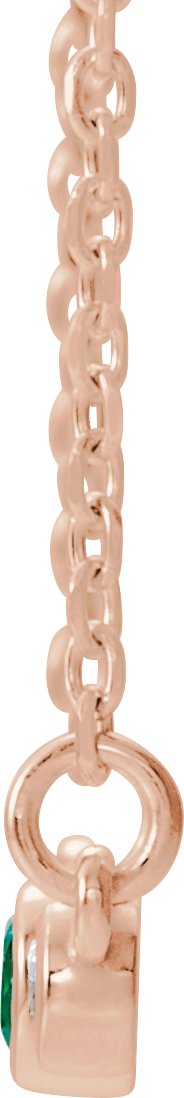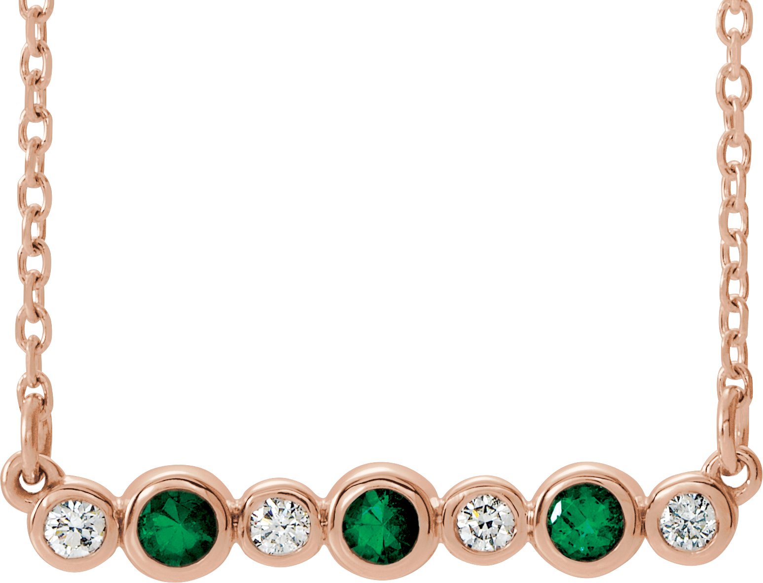 14K Rose Chatham Created Emerald & .08 CTW Diamond Bezel Set Bar 16 18" Necklace Ref. 14204913