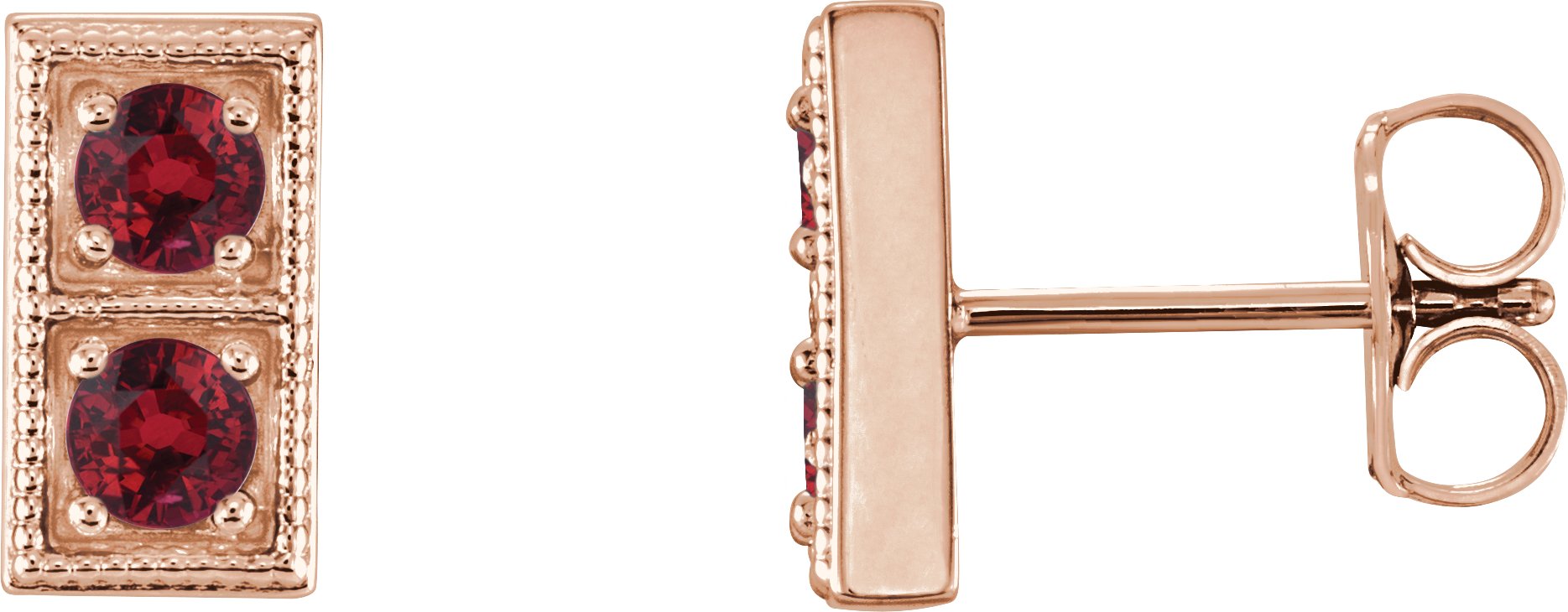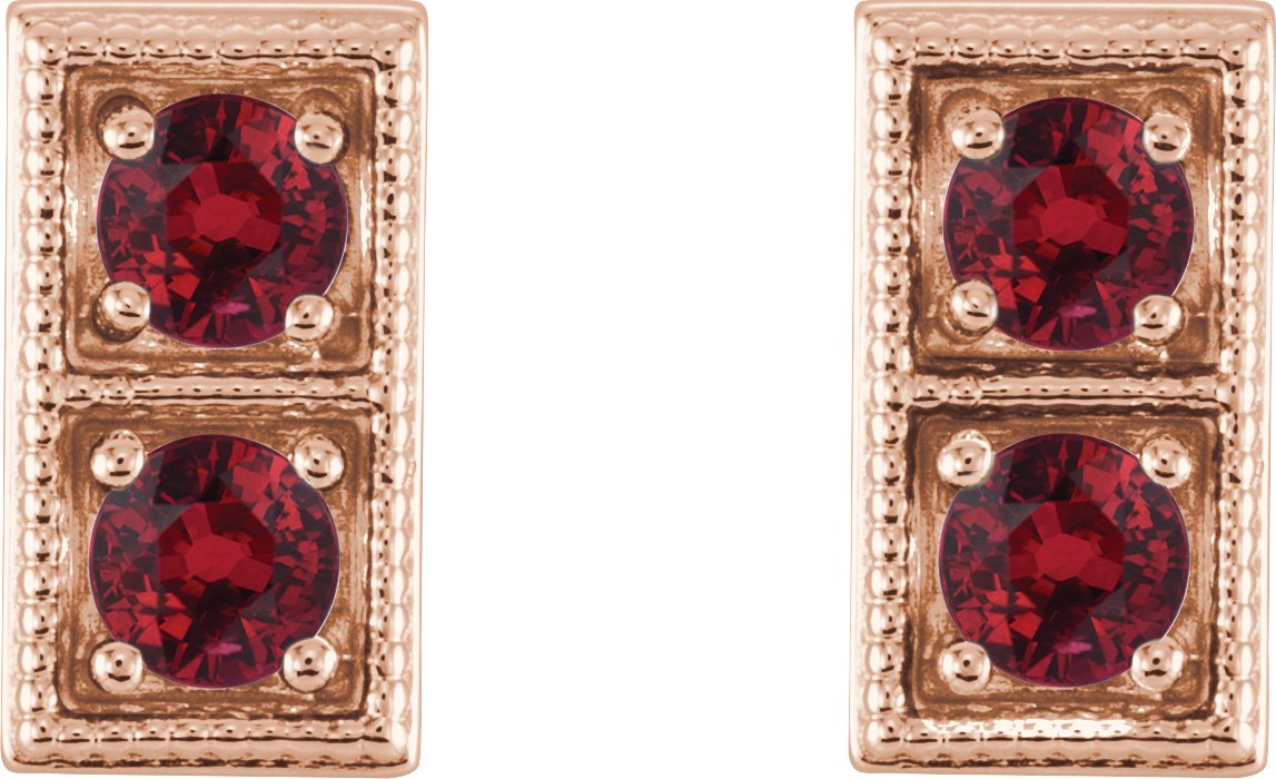 14K Rose Chatham Created Ruby Two Stone Earrings