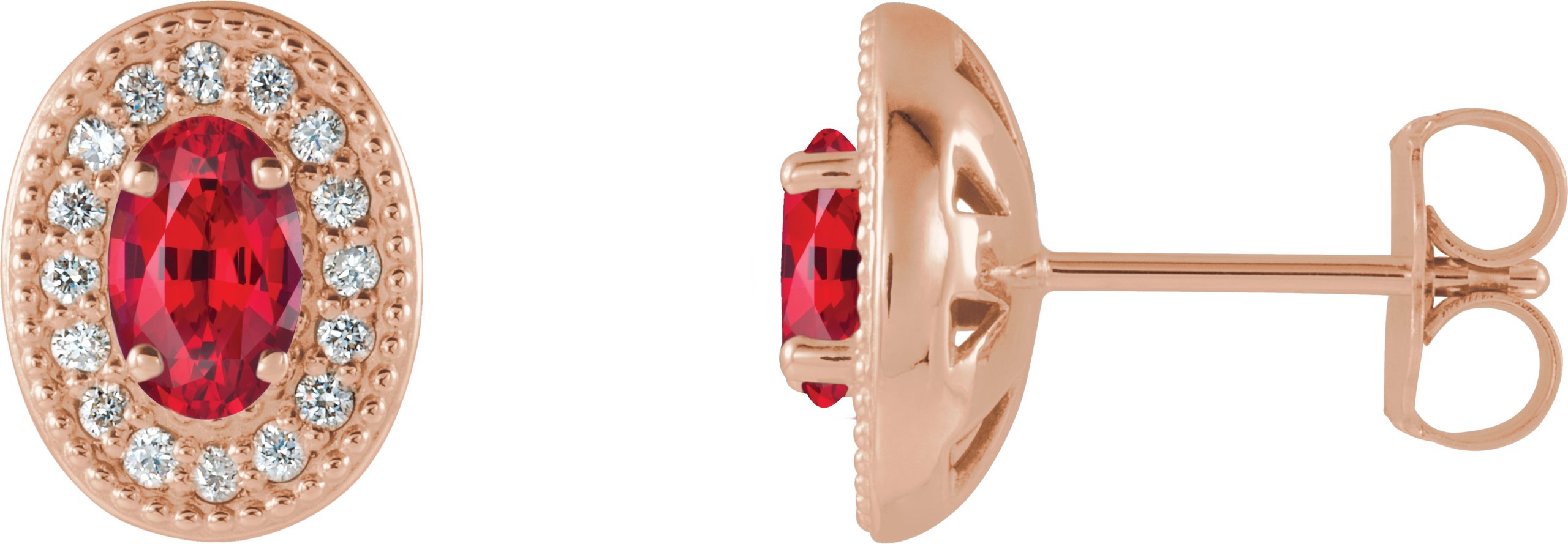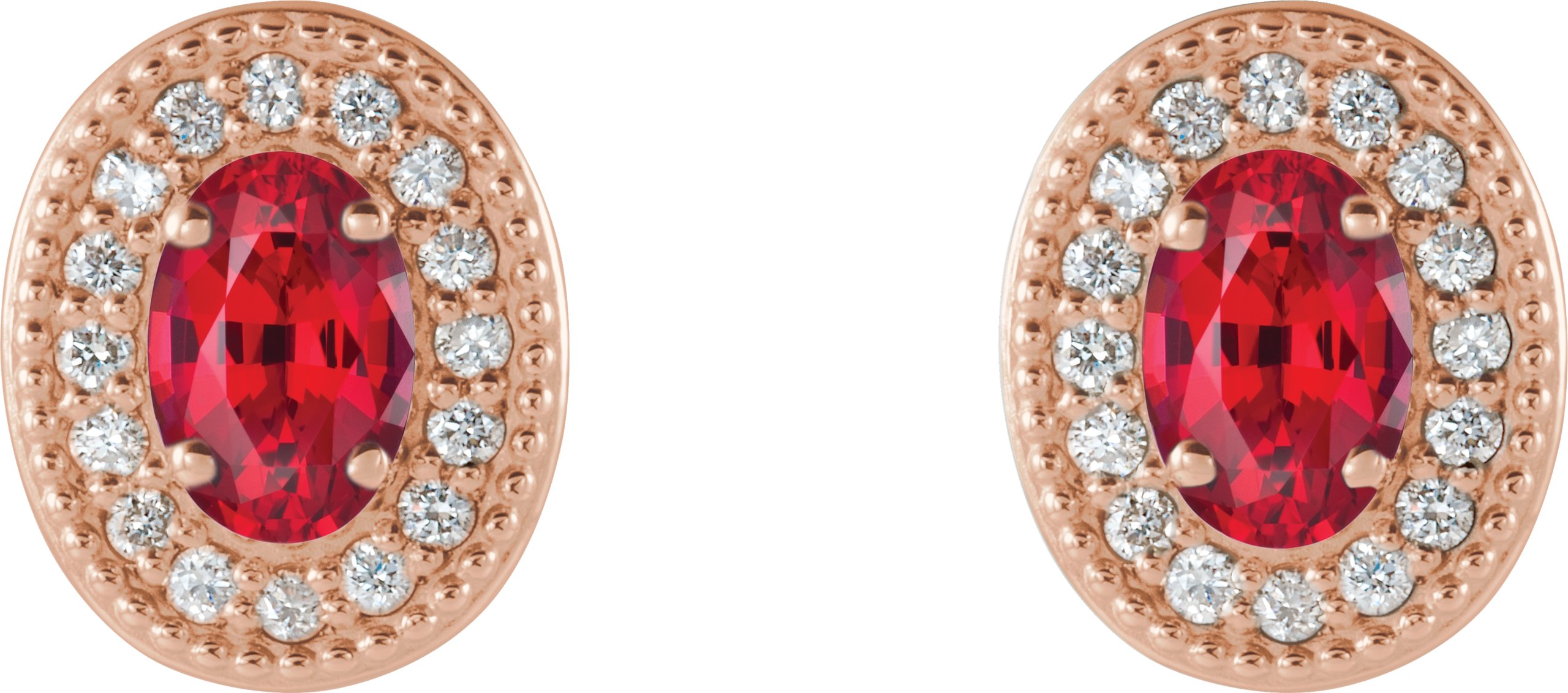 14K Rose Chatham Created Ruby & 1/8 CTW Diamond Halo Style Earrings