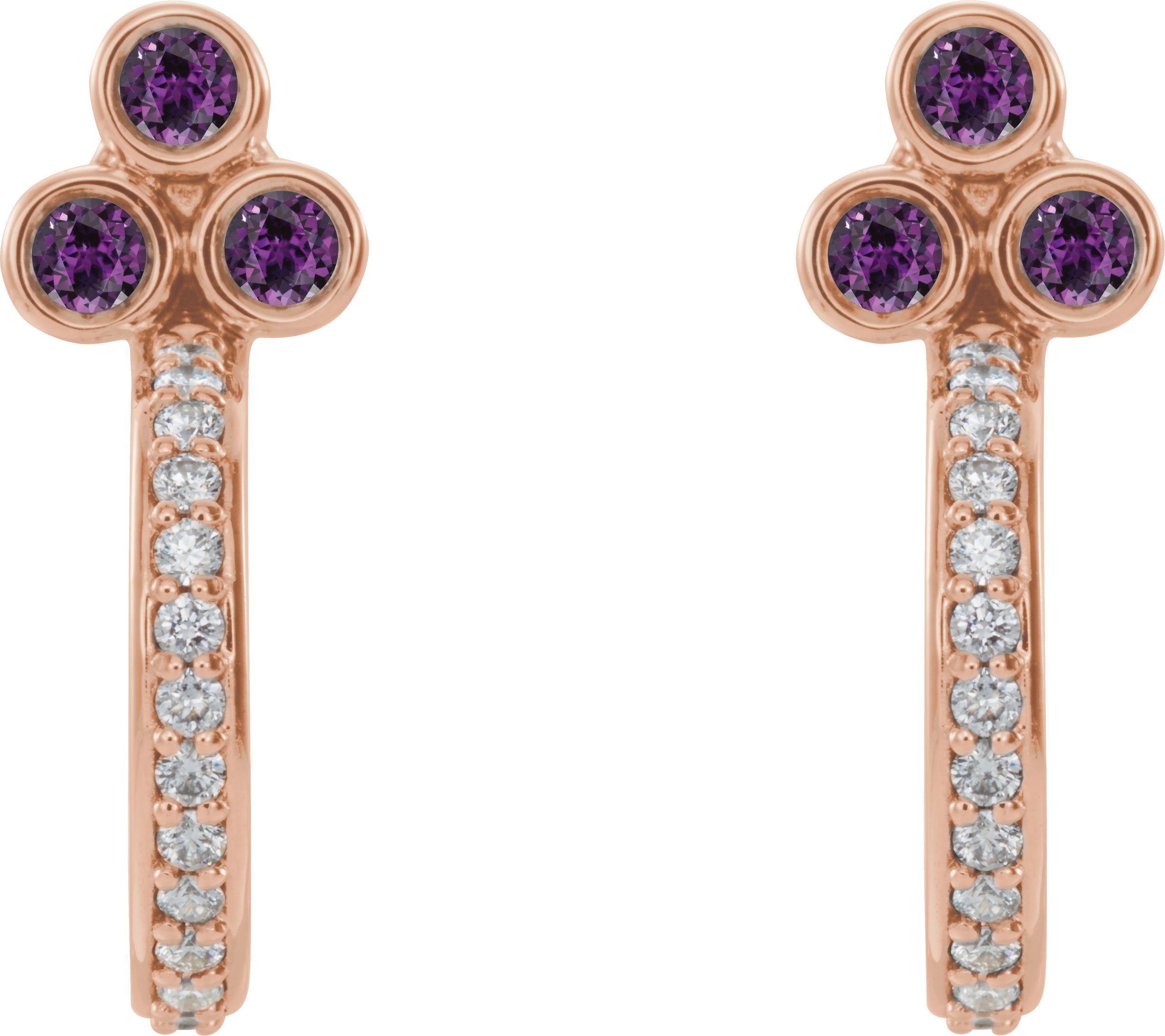 14K Rose Chatham Lab Created Alexandrite & 1/4 CTW Diamond J Hoop Earrings