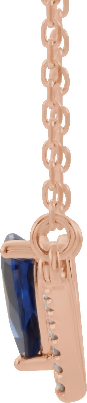 14K Rose Chatham Lab Created Blue Sapphire & .06 CTW Diamond 16 inch Necklace