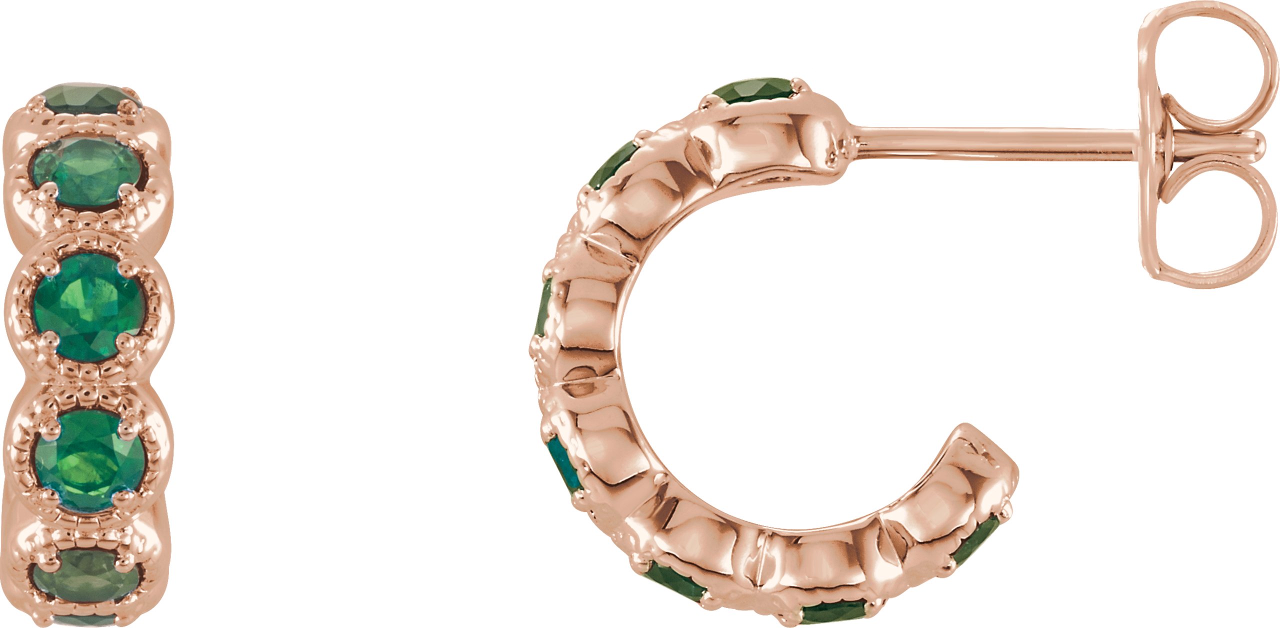 14K Rose Chatham Lab Created Emerald Hoop Earrings