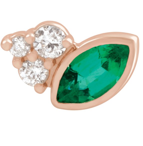 14K Rose Chatham Lab Created Emerald and .03 CTW Diamond Right Earring