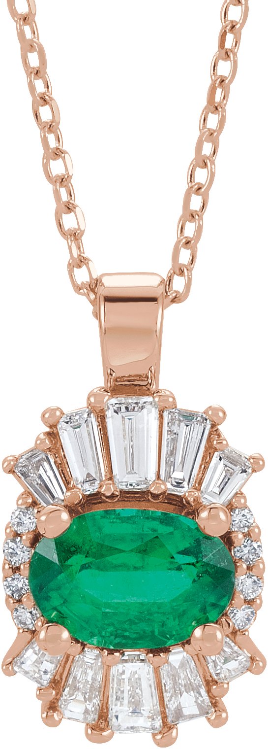 14K Rose Chatham Lab Created Emerald & 1/3 CTW Diamond 16 18" Necklace Ref. 15758328