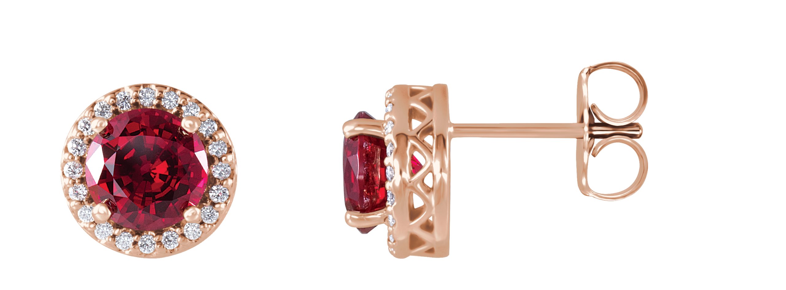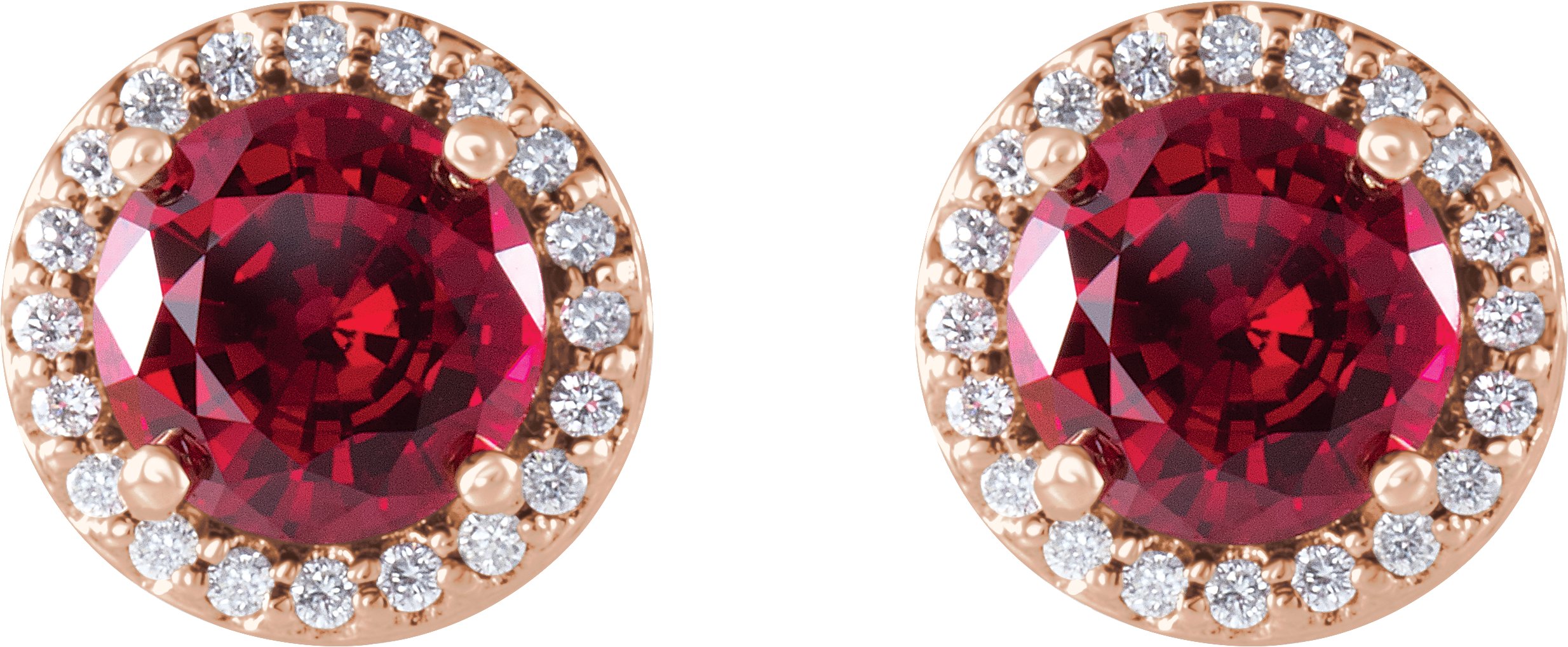 14K Rose Chatham Lab Created Ruby and .06 CTW Diamond Earrings