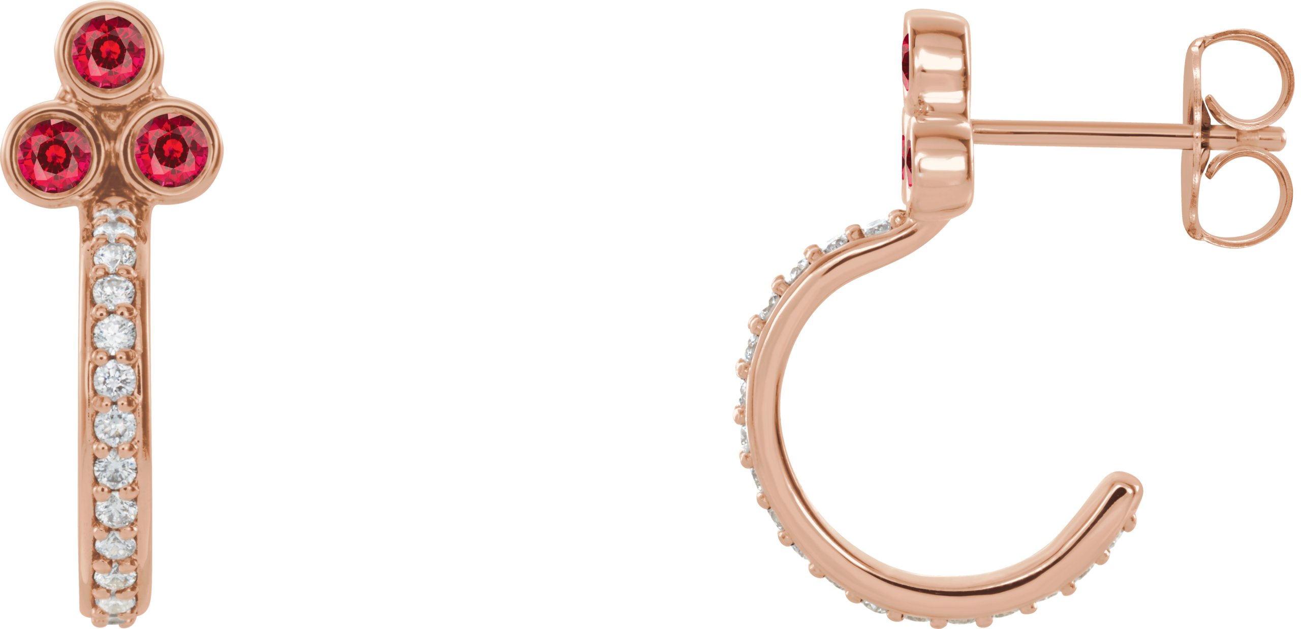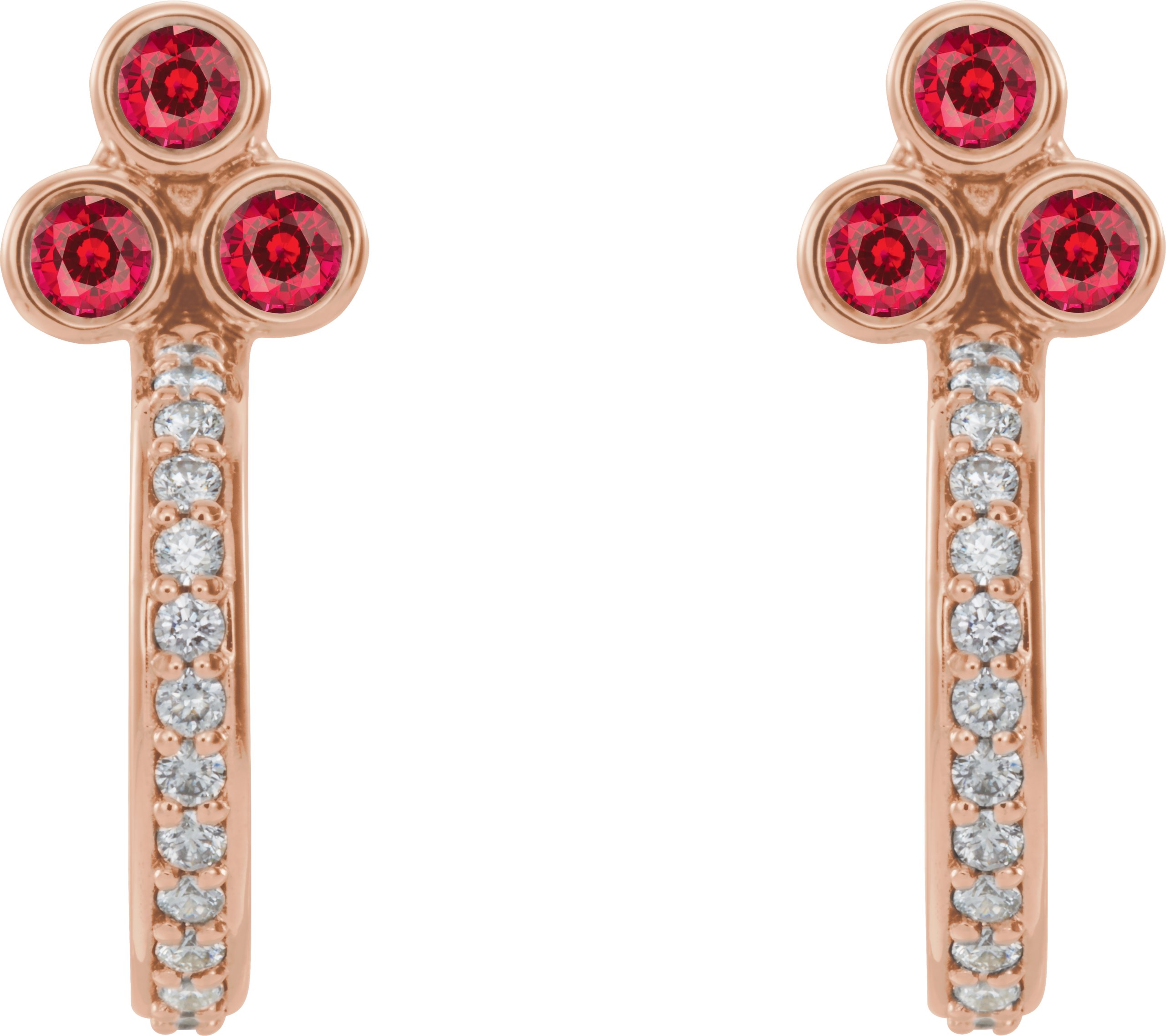 14K Rose Chatham Lab Created Ruby & 1/4 CTW Diamond J Hoop Earrings