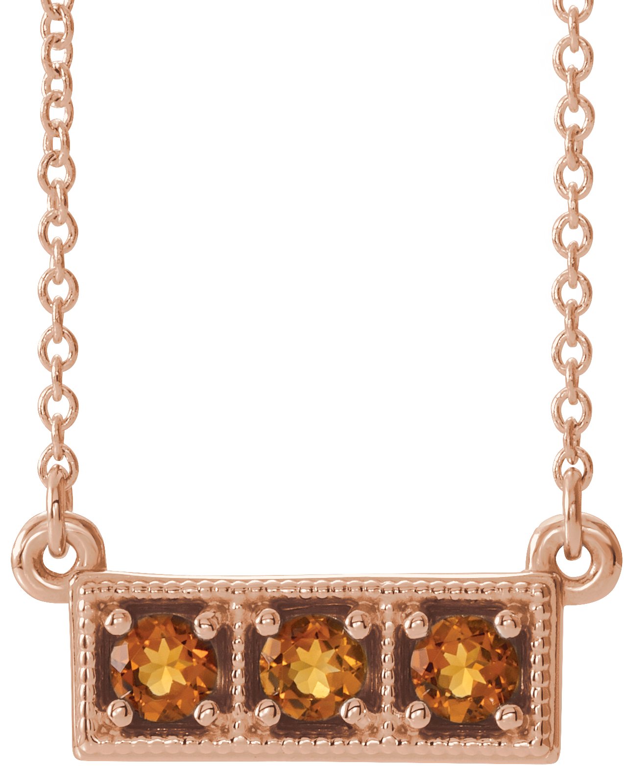 14K Rose Citrine Three Stone Granulated Bar 16 18" Necklace Ref. 14204277